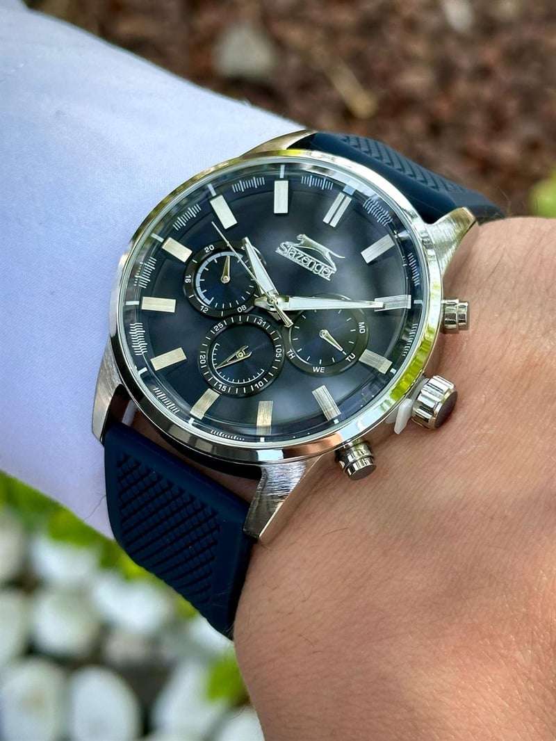 Мужские наручные часы Slazenger SL.09.2107.2.04 сочетают в себе современный дизайн и функциональность для повседневного использования. Модель обладает круглым корпусом диаметром 46 мм, изготовленным из суперметалла, что обеспечивает высокую устойчивость к внешним воздействиям. Ремень выполнен из силикона с классической застежкой, гарантирующей комфортное ношение и безопасность. Синий циферблат имеет дополнительные малые циферблаты для отображения даты, дня недели и текущего времени в 24-часовом формате. Стрелки и метки имеют люминесцентное покрытиеЛюминесцентное покрытиеПозволяет считывать показания времени в темноте. Производители наносят на стрелки, часовые индексы, безель или поверхность циферблата светонакопительный состав, дающий холодное свечение., что позволяет легко читать время в темноте. Для защиты используется минеральное стеклоМинеральное стеклоМинеральное стекло представляет собой искусственно выращенный минерал кварца. Такое стекло отличается особой устойчивостью к повреждениям и царапинам. Уступает по некоторым качествам сапфировому стеклу., обеспечивающее высокую устойчивость к царапинам. Часы работают на кварцевом механизме, что гарантирует точное время без необходимости подзаводки. Модель также имеет класс водонепроницаемости WR50 (5 атм), что позволяет использовать их во время плавания без ныряния.