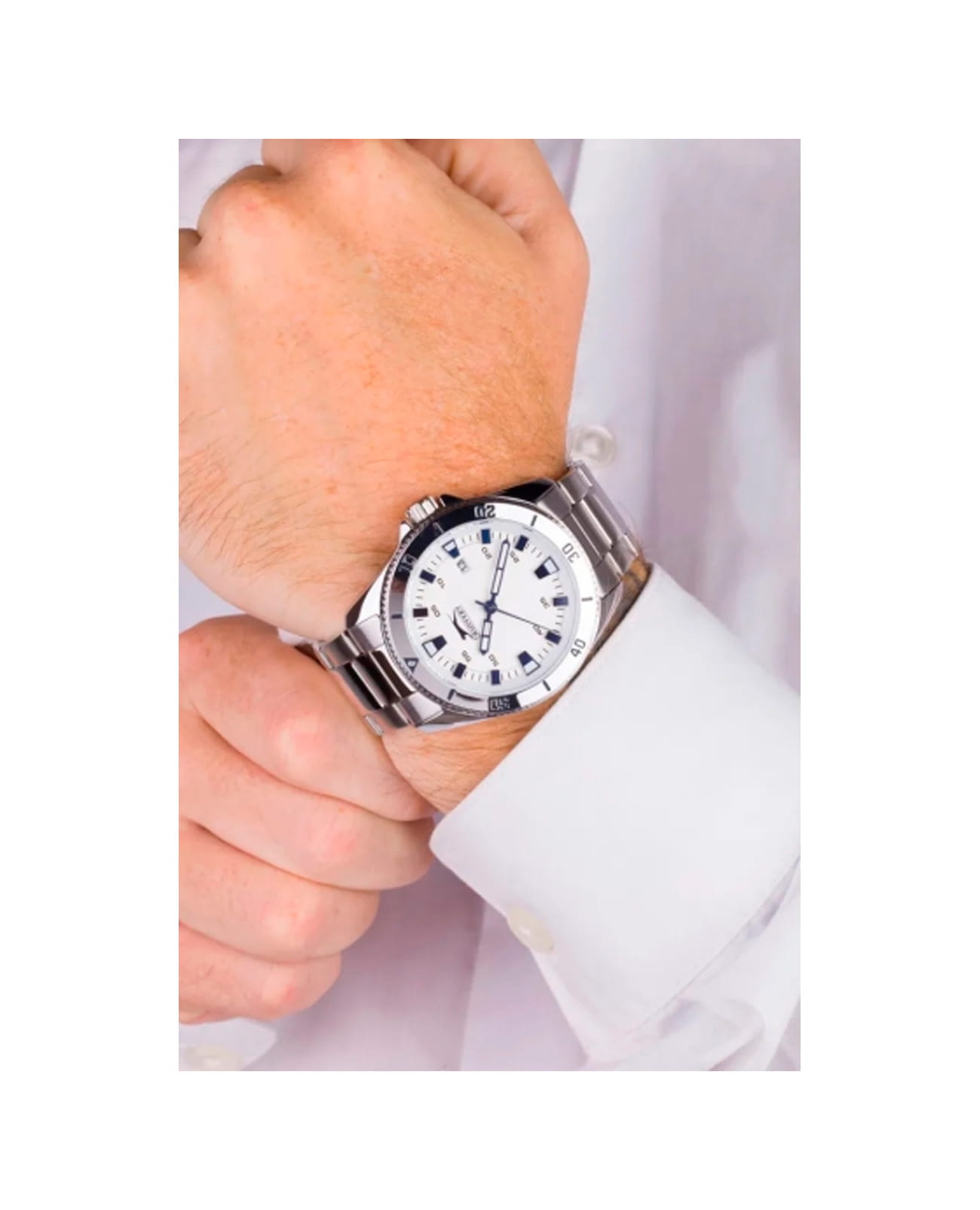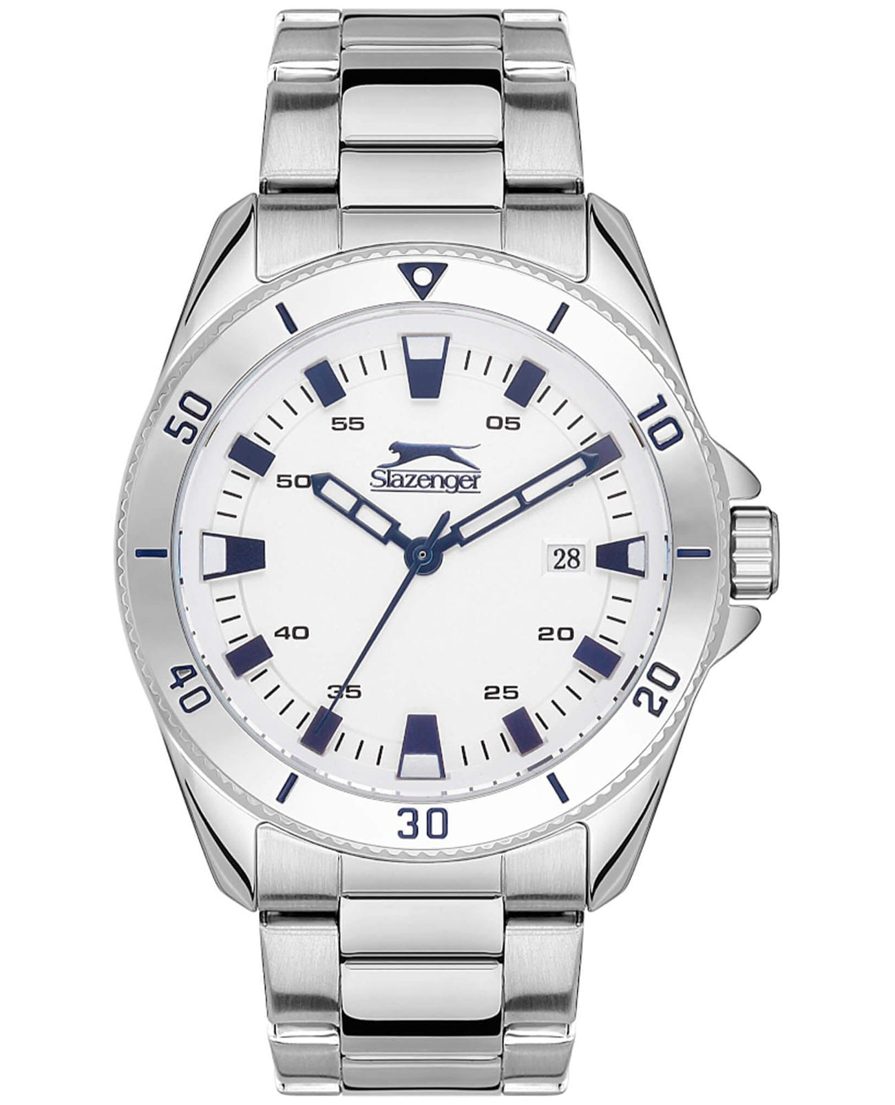 Мужские наручные часы Slazenger SL.09.2114.2.01 сочетают в себе классический дизайн и надежность современных технологий. Модель обладает круглым корпусом диаметром 44 мм, изготовленным из нержавеющей стали, что обеспечивает высокую устойчивость к внешним воздействиям. Браслет выполнен из металла с раскладной застежкойРаскладной замокДанный вариант застежки используется только на часах с металлическим браслетом. Отличительная особенность такого крепления в том, что длина браслета становится универсальной и вы можете самостоятельно отрегулировать нужный вам размер – застежка просто двигается по браслету часов., гарантирующей комфортное ношение и безопасность. Циферблат серебристого цвета декорирован стрелками с люминесцентным покрытиемЛюминесцентное покрытиеПозволяет считывать показания времени в темноте. Производители наносят на стрелки, часовые индексы, безель или поверхность циферблата светонакопительный состав, дающий холодное свечение., которые обеспечивают читаемость времени даже в условиях недостаточной освещенности. Для защиты используется минеральное стеклоМинеральное стеклоМинеральное стекло представляет собой искусственно выращенный минерал кварца. Такое стекло отличается особой устойчивостью к повреждениям и царапинам. Уступает по некоторым качествам сапфировому стеклу., обеспечивающее прочную защиту от царапин. Вращающийся стальной безельБезельВнешний ободок, закрепляющий стекло. В спортивных часах так называется поворотное кольцо с делениями на циферблате, выполняет роль таймера – замеряет отрезки времени на шкале. Неподвижный безель – элемент декора. Однонаправленно вращающийся безель на дайверских часах позволяет фиксировать моменты погружения и выныривания на поверхность.. Часы работают на кварцевом механизме, что гарантирует точное время без необходимости подзаводки. Водонепроницаемость часов достигает 5 атмосфер (WR50), что позволяет использовать их во время плавания, однако они не предназначены для дайвинга или других водных видов спорта. Толщина модели составляет 12 мм.