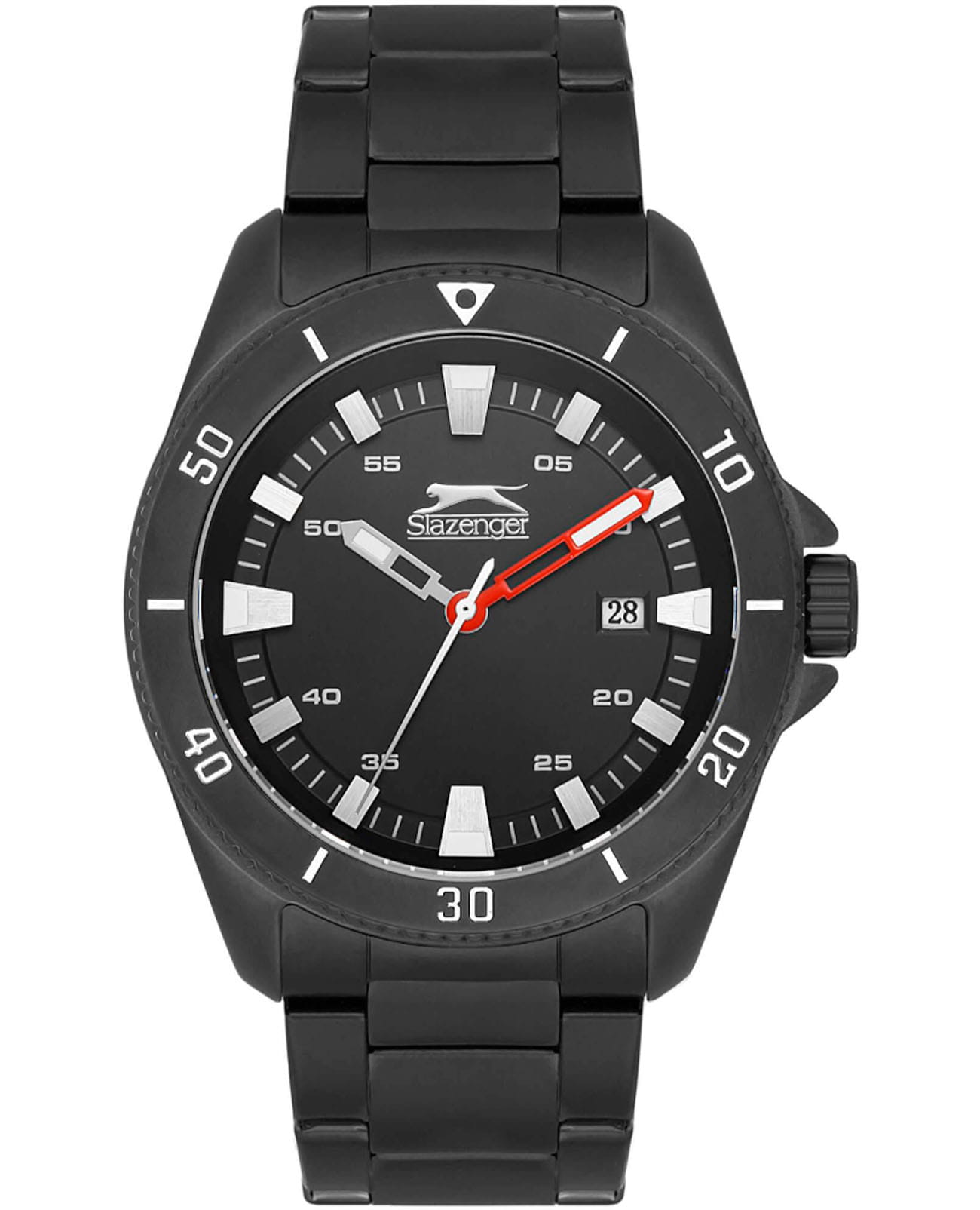 Мужские наручные часы Slazenger SL.09.2114.2.05 сочетают в себе классический дизайн и надежность современных технологий. Модель обладает круглым корпусом диаметром 44 мм, изготовленным из суперметалла с IP-покрытиемIP-покрытиеМетод ионного напыления. Демонстрирует повышенную устойчивость к истиранию, окислению и химическим веществам. Под воздействием высокого давления и температуры около 1500°C молекулы металла надёжно соединяются с частицами корпуса часов., что обеспечивает высокую устойчивость к внешним воздействиям. Браслет выполнен из того же материала с раскладной застежкойРаскладная застёжкаТакой тип застёжки используется только на браслетах из металла. Она никогда не раскрывается полностью, происходит разделение на 2 и более частей. Раскладывающая застёжка снизит вероятность потери часов к минимуму., гарантирующей комфортное ношение и безопасность. Чёрный циферблат оснащен индикатором даты. Для защиты применяется минеральное стеклоМинеральное стеклоМинеральное стекло представляет собой искусственно выращенный минерал кварца. Такое стекло отличается особой устойчивостью к повреждениям и царапинам. Уступает по некоторым качествам сапфировому стеклу., устойчивое к царапинам. Часы работают на кварцевом механизме, что гарантирует точное время без необходимости подзаводки. Водонепроницаемость часов достигает 5 атмосфер (50 метров), что позволяет использовать их при контакте с водой, например, во время мытья рук или попадания брызг, однако не рекомендуется для плавания. Вес часов составляет 162 грамма, что делает их удобными для ежедневного использования.