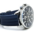 Часы Slazenger SL.09.2127.2.02 воплощают в себе элегантность и практичность, идеально подходящие для современных мужчин. Их синий циферблат, защищенный минеральным стекломМинеральное стеклоМинеральное стекло представляет собой искусственно выращенный минерал кварца. Такое стекло отличается особой устойчивостью к повреждениям и царапинам. Уступает по некоторым качествам сапфировому стеклу., заключен в серебристый корпус диаметром 47 мм, который изготовлен из прочного суперметалла. Надежный кварцевый механизм обеспечивает точность, а водозащита 5 ATM делает их устойчивыми к воздействию воды. Силиконовый браслет с классической застежкой - очень комфортно сидит на запястье. Часы оснащены 24-часовым указателем времени, а также функциями отображения даты и дня недели на дополнительных малых циферблатах. Люминесцентное покрытиеЛюминесцентное покрытиеПозволяет считывать показания времени в темноте. Производители наносят на стрелки, часовые индексы, безель или поверхность циферблата светонакопительный состав, дающий холодное свечение. на стрелках и метках обеспечивает отличную видимость в темноте.