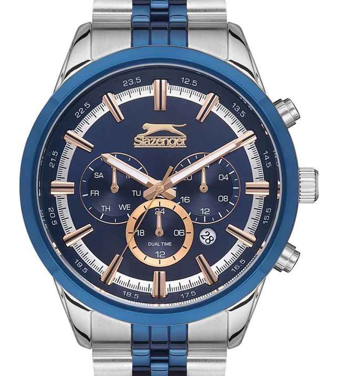 Часы Slazenger SL.09.2131.2.02 воплощают в себе элегантность и практичность, идеально подходящие для современных мужчин. Их синий циферблат, защищенный минеральным стекломМинеральное стеклоМинеральное стекло представляет собой искусственно выращенный минерал кварца. Такое стекло отличается особой устойчивостью к повреждениям и царапинам. Уступает по некоторым качествам сапфировому стеклу., заключен в серебристый корпус диаметром 46 мм, который изготовлен из прочного суперметалла. Часы оснащены двойным форматом времени (12 и 24 часа), вторым часовым поясом и удобным окошком даты. Надежный кварцевый механизм обеспечивает точность, а водозащита 5 ATM делает их устойчивыми к воздействию воды. Стальной браслет из суперметалла с частичным синим IP-покрытиемIP-покрытиеМетод ионного напыления. Демонстрирует повышенную устойчивость к истиранию, окислению и химическим веществам. Под воздействием высокого давления и температуры около 1500°C молекулы металла надёжно соединяются с частицами корпуса часов. имеет раскладную застёжкуРаскладная застёжкаТакой тип застёжки используется только на браслетах из металла. Она никогда не раскрывается полностью, происходит разделение на 2 и более частей. Раскладывающая застёжка снизит вероятность потери часов к минимуму., что подчеркивает современный стиль и позволяет легко снимать часы. Часы оснащены 24-часовым указателем времени, а также функциями отображения даты и дня недели. Люминесцентное покрытиеЛюминесцентное покрытиеПозволяет считывать показания времени в темноте. Производители наносят на стрелки, часовые индексы, безель или поверхность циферблата светонакопительный состав, дающий холодное свечение. на стрелках и метках обеспечивает отличную видимость в темноте.