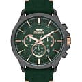 Часы Slazenger SL.09.2136.2.04 воплощают в себе элегантность и практичность, идеально подходящие для современных мужчин. Их зеленый циферблат, защищенный минеральным стекломМинеральное стеклоМинеральное стекло представляет собой искусственно выращенный минерал кварца. Такое стекло отличается особой устойчивостью к повреждениям и царапинам. Уступает по некоторым качествам сапфировому стеклу., заключен в корпус диаметром 47 мм, который изготовлен из прочного суперметалла с IP-покрытиемIP-покрытиеМетод ионного напыления. Демонстрирует повышенную устойчивость к истиранию, окислению и химическим веществам. Под воздействием высокого давления и температуры около 1500°C молекулы металла надёжно соединяются с частицами корпуса часов.  серого цвета. Часы оснащены двойным форматом времени (12 и 24 часа), вторым часовым поясом, указателем дней недели и удобным окошком даты. Надежный кварцевый механизм обеспечивает точность, а водозащита 5 ATM делает их устойчивыми к воздействию воды. Ремень из силикона со вставками из суперметалла с IP-покрытиемIP-покрытиеМетод ионного напыления. Демонстрирует повышенную устойчивость к истиранию, окислению и химическим веществам. Под воздействием высокого давления и температуры около 1500°C молекулы металла надёжно соединяются с частицами корпуса часов.  имеет классическую застежку, что позволяет легко регулировать его длину на запястье. Люминесцентное покрытиеЛюминесцентное покрытиеПозволяет считывать показания времени в темноте. Производители наносят на стрелки, часовые индексы, безель или поверхность циферблата светонакопительный состав, дающий холодное свечение. на стрелках и метках обеспечивает отличную видимость в темноте. Размер браслета (H1-H2): 24-22 мм.