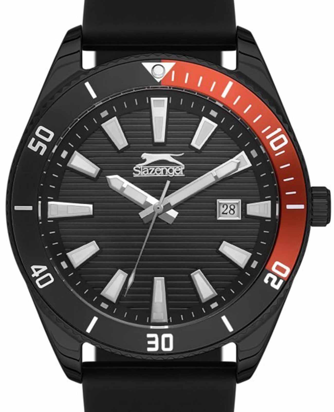Мужские наручные часы Slazenger SL.09.2174.2.01 — стильный аксессуар с ярко выраженными спортивными чертами, который станет надежным спутником в повседневной жизни. Эти часы оснащены кварцевым механизмом, обеспечивающим высокую точность хода. Металлический корпус с черным IP-покрытиемIP-покрытиеМетод ионного напыления. Демонстрирует повышенную устойчивость к истиранию, окислению и химическим веществам. Под воздействием высокого давления и температуры около 1500°C молекулы металла надёжно соединяются с частицами корпуса часов. в сочетании с черным силиконовый ремешком на классической застежке шириной 22 мм создает гармоничный и современный образ. Диаметр корпуса составляет 44 мм, а толщина — 14 мм, что придает часам стильный и выразительный вид. Вращающийся безельБезельВнешний ободок, закрепляющий стекло. В спортивных часах так называется поворотное кольцо с делениями на циферблате, выполняет роль таймера – замеряет отрезки времени на шкале. Неподвижный безель – элемент декора. Однонаправленно вращающийся безель на дайверских часах позволяет фиксировать моменты погружения и выныривания на поверхность. с черным и красным IP-покрытиемIP-покрытиеМетод ионного напыления. Демонстрирует повышенную устойчивость к истиранию, окислению и химическим веществам. Под воздействием высокого давления и температуры около 1500°C молекулы металла надёжно соединяются с частицами корпуса часов., что придает ему дополнительную прочность и устойчивость к износу. Минеральное стеклоМинеральное стеклоМинеральное стекло представляет собой искусственно выращенный минерал кварца. Такое стекло отличается особой устойчивостью к повреждениям и царапинам. Уступает по некоторым качествам сапфировому стеклу. защищает циферблат от царапин и внешних воздействий, а водозащита уровня WR 50 позволяет не беспокоиться о случайных контактах с водой, будь то дождь или мытье рук. Часы также оснащены функцией отображения даты в отдельном окошке, что добавляет удобства в ежедневном использовании. Люминесцентное покрытиеЛюминесцентное покрытиеПозволяет считывать показания времени в темноте. Производители наносят на стрелки, часовые индексы, безель или поверхность циферблата светонакопительный состав, дающий холодное свечение. на стрелках и метках обеспечивает отличную видимость в темноте.