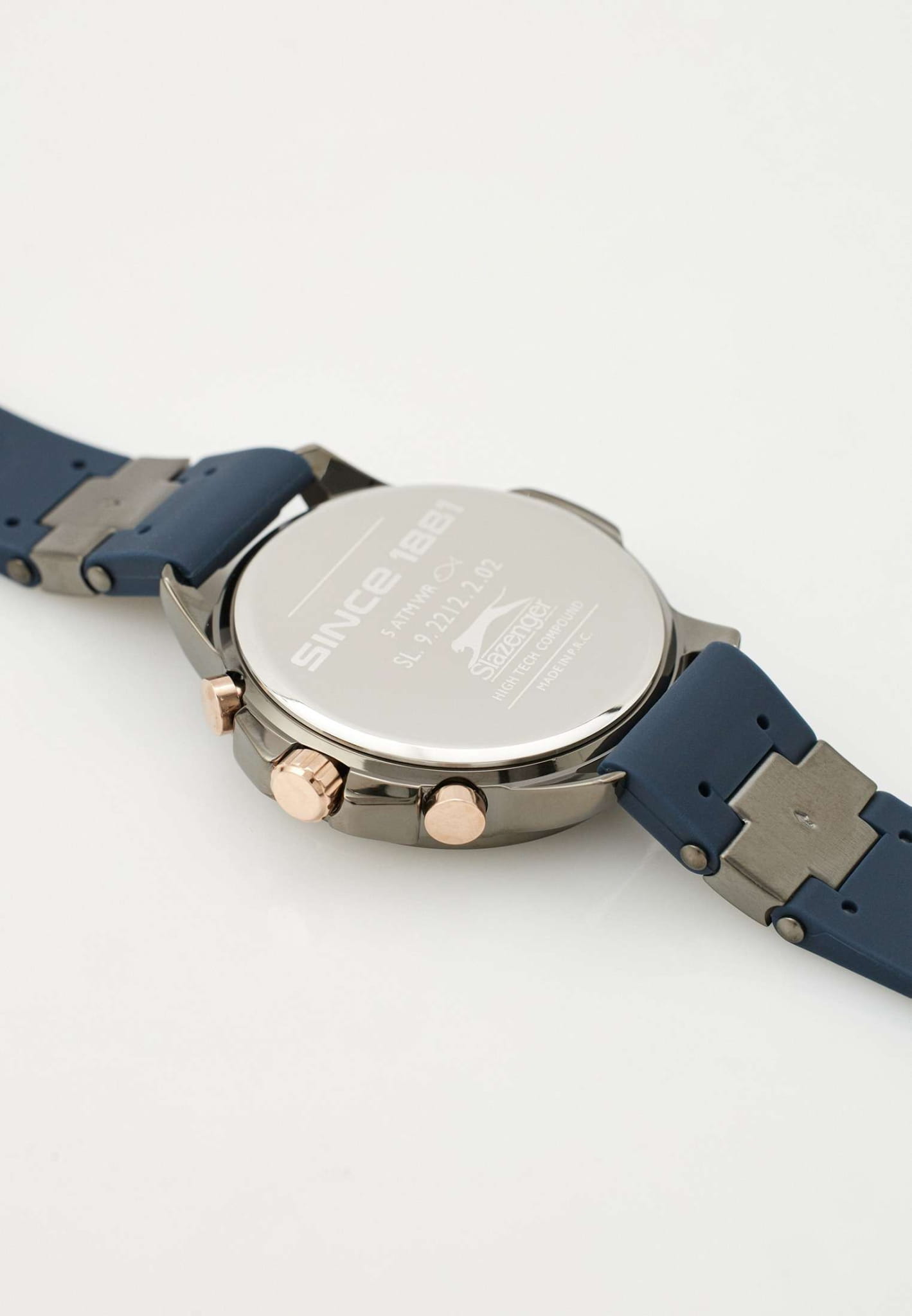 Часы Slazenger SL.09.2212.2.02 представляют собой стильный и функциональный аксессуар, созданный для современных мужчин, ценящих качество и надежность. Они оснащены кварцевым механизмом, который обеспечивает точность хода и минимальную необходимость в обслуживании. Люминесцентное покрытиеЛюминесцентное покрытиеПозволяет считывать показания времени в темноте. Производители наносят на стрелки, часовые индексы, безель или поверхность циферблата светонакопительный состав, дающий холодное свечение. на стрелках и метках обеспечивает отличную видимость в темноте. Благодаря водозащите уровня WR 50 (5 ATM), эти часы отлично справляются с воздействием влаги, что делает их подходящими для повседневного ношения и активного образа жизни. Минеральное стеклоМинеральное стеклоМинеральное стекло представляет собой искусственно выращенный минерал кварца. Такое стекло отличается особой устойчивостью к повреждениям и царапинам. Уступает по некоторым качествам сапфировому стеклу. защищает циферблат от царапин и повреждений, гарантируя долгий срок службы. Корпус часов диаметром 47 мм и толщиной 13 мм выполнен из прочного суперметалла с черным IP-покрытиемIP-покрытиеМетод ионного напыления. Демонстрирует повышенную устойчивость к истиранию, окислению и химическим веществам. Под воздействием высокого давления и температуры около 1500°C молекулы металла надёжно соединяются с частицами корпуса часов., что придаёт им стильный и современный вид. Силиконовый синий браслет, дополненный элементами из суперметалла с черным IP-покрытиемIP-покрытиеМетод ионного напыления. Демонстрирует повышенную устойчивость к истиранию, окислению и химическим веществам. Под воздействием высокого давления и температуры около 1500°C молекулы металла надёжно соединяются с частицами корпуса часов., обеспечивает комфорт при носке и надёжно фиксирует часы на запястье, а его размеры (22-20 мм) подходят для большинства мужчин. Часы оснащены рядом полезных функций, таких как индикация даты, дня недели и 24-часовой указатель времени, что делает их не только стильным, но и практичным аксессуаром. Вес модели составляет 110 г, что делает их лёгкими и удобными для ежедневного ношения.