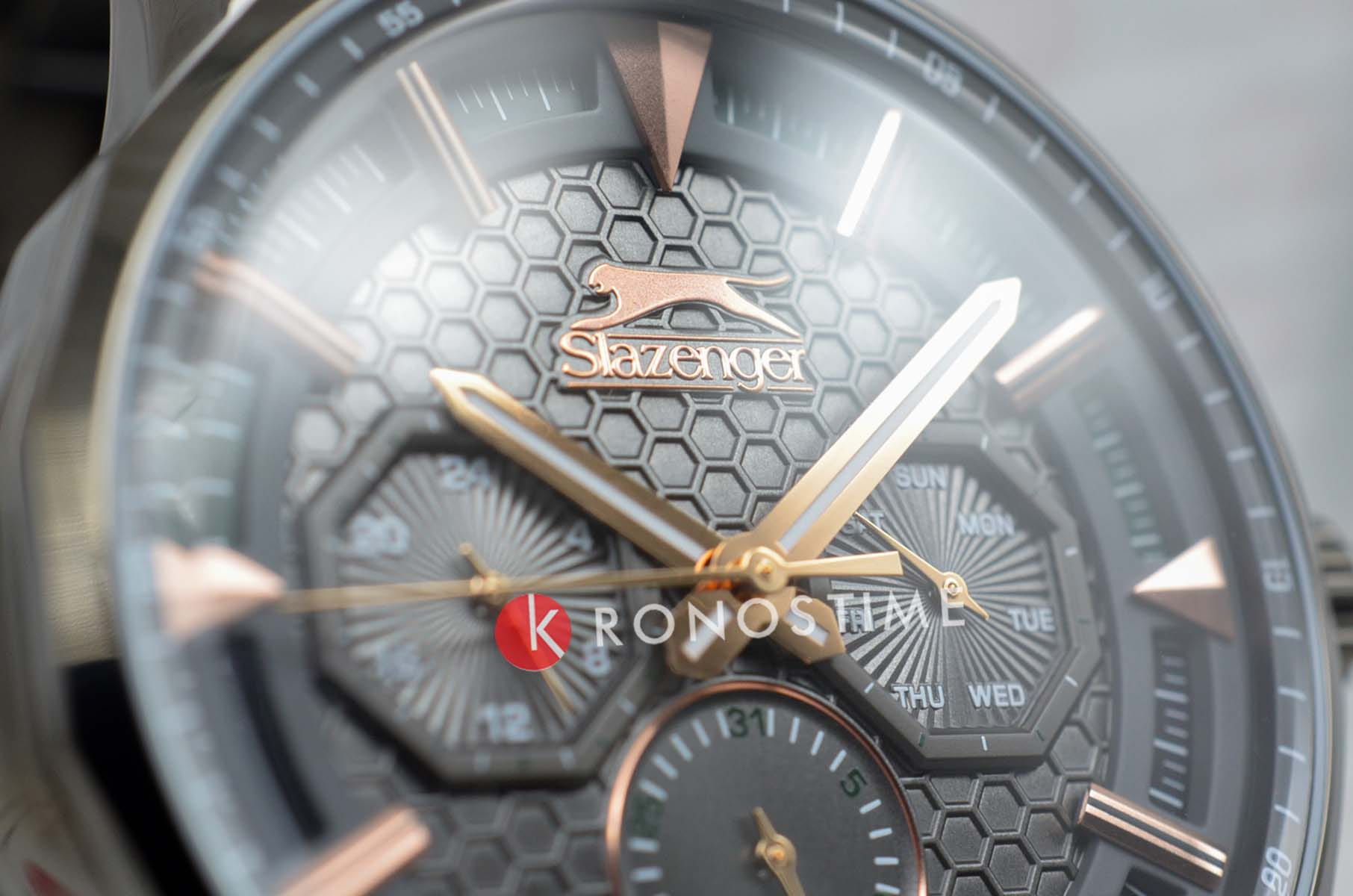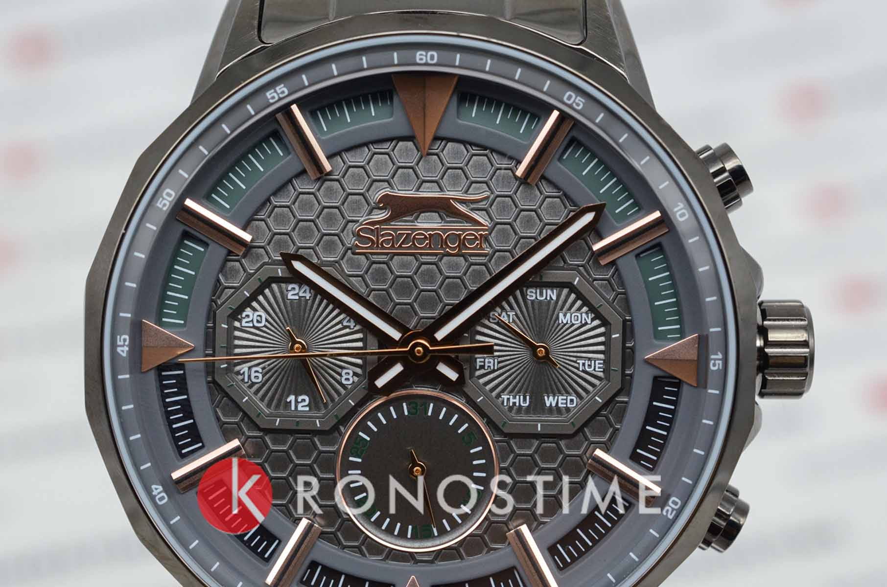 Стильные мужские наручные часы Slazenger SL.09.2216.2.02 станут идеальным аксессуаром для современного мужчины. Этот британский бренд славится своим качеством и надежностью, а данная модель не является исключением. Часы оснащены кварцевым механизмом, что обеспечивает точность хода и долговечность использования. Корпус часов выполнен из металла с черным IP-покрытиемIP-покрытиеМетод ионного напыления. Демонстрирует повышенную устойчивость к истиранию, окислению и химическим веществам. Под воздействием высокого давления и температуры около 1500°C молекулы металла надёжно соединяются с частицами корпуса часов., а прочное минеральное стеклоМинеральное стеклоМинеральное стекло представляет собой искусственно выращенный минерал кварца. Такое стекло отличается особой устойчивостью к повреждениям и царапинам. Уступает по некоторым качествам сапфировому стеклу. защищает циферблат от царапин и повреждений. Элегантный металлический браслет черного цвета снабжен удобной раскладной застёжкойРаскладная застёжкаТакой тип застёжки используется только на браслетах из металла. Она никогда не раскрывается полностью, происходит разделение на 2 и более частей. Раскладывающая застёжка снизит вероятность потери часов к минимуму., что гарантирует комфортное ношение на запястье. Ширина браслета составляет 22 мм, что придает часам солидный вид. Диаметр корпуса равен 45 мм, а толщина 12 мм, что делает эту модель заметной, но в то же время не громоздкой. Водозащита уровня WR 50 позволяет использовать часы в повседневной жизни, не беспокоясь о случайных попаданиях воды. Стрелки снабжены люминесцентным покрытиемЛюминесцентное покрытиеПозволяет считывать показания времени в темноте. Производители наносят на стрелки, часовые индексы, безель или поверхность циферблата светонакопительный состав, дающий холодное свечение., что позволяет легко считывать время в темноте. Функциональные возможности часов включают отображение даты, дня недели и времени в 24-часовом формате на дополнительных малых циферблатах. Это делает модель не только стильной, но и практичной в использовании.