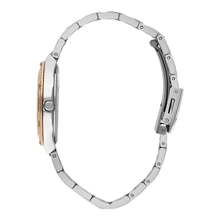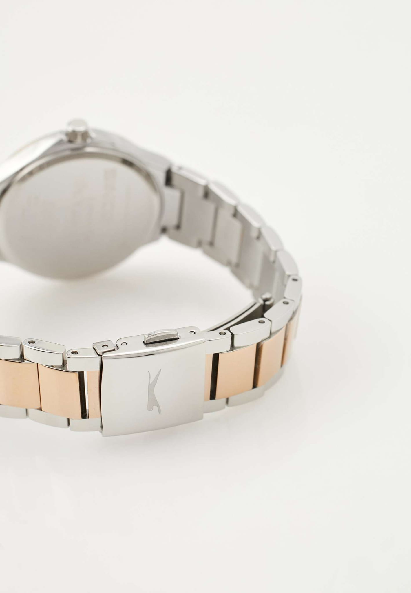 Часы Slazenger SL.09.2225.3.02 — это изысканный аксессуар, который подчеркнёт ваш стиль и индивидуальность. Модель оснащена надёжным кварцевым механизмом, обеспечивающим точность хода. Корпус из прочного металла диаметром 35 мм, а безельБезельВнешний ободок, закрепляющий стекло. В спортивных часах так называется поворотное кольцо с делениями на циферблате, выполняет роль таймера – замеряет отрезки времени на шкале. Неподвижный безель – элемент декора. Однонаправленно вращающийся безель на дайверских часах позволяет фиксировать моменты погружения и выныривания на поверхность. с розово-золотистым IP-покрытиемIP-покрытиеМетод ионного напыления. Демонстрирует повышенную устойчивость к истиранию, окислению и химическим веществам. Под воздействием высокого давления и температуры около 1500°C молекулы металла надёжно соединяются с частицами корпуса часов. украшен сияющими кристаллами. Перламутровый циферблат придаёт часам особый шарм. Металлический серебристый браслет с частичным розово-золотистым  IP-покрытиемIP-покрытиеМетод ионного напыления. Демонстрирует повышенную устойчивость к истиранию, окислению и химическим веществам. Под воздействием высокого давления и температуры около 1500°C молекулы металла надёжно соединяются с частицами корпуса часов. с удобной раскладной застёжкойРаскладная застёжкаТакой тип застёжки используется только на браслетах из металла. Она никогда не раскрывается полностью, происходит разделение на 2 и более частей. Раскладывающая застёжка снизит вероятность потери часов к минимуму. гармонично дополняет изящный дизайн. Минеральное стеклоМинеральное стеклоМинеральное стекло представляет собой искусственно выращенный минерал кварца. Такое стекло отличается особой устойчивостью к повреждениям и царапинам. Уступает по некоторым качествам сапфировому стеклу. защищает циферблат от царапин, а водозащита уровня WR 30 позволяет не беспокоиться о случайных каплях воды. Заводная головка оснащена специальной защитой. Эти часы станут прекрасным выбором для тех, кто ценит сочетание элегантности и функциональности.