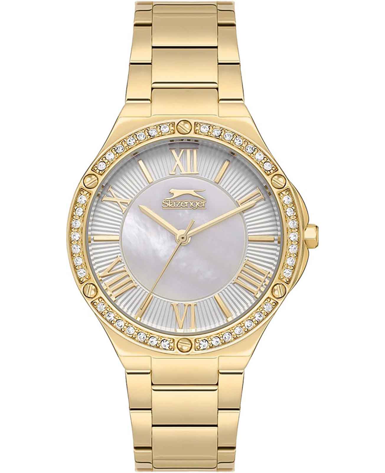 Часы Slazenger SL.09.2225.3.05 — это изысканный аксессуар, который подчеркнёт ваш стиль и индивидуальность. Модель оснащена надёжным кварцевым механизмом, обеспечивающим точность хода. Корпус из прочного металла с золотистым IP-покрытиемIP-покрытиеМетод ионного напыления. Демонстрирует повышенную устойчивость к истиранию, окислению и химическим веществам. Под воздействием высокого давления и температуры около 1500°C молекулы металла надёжно соединяются с частицами корпуса часов. диаметром 35 мм, а безельБезельВнешний ободок, закрепляющий стекло. В спортивных часах так называется поворотное кольцо с делениями на циферблате, выполняет роль таймера – замеряет отрезки времени на шкале. Неподвижный безель – элемент декора. Однонаправленно вращающийся безель на дайверских часах позволяет фиксировать моменты погружения и выныривания на поверхность. украшен сияющими кристаллами. Перламутровый циферблат придаёт часам особый шарм. Металлический браслет с золотистым IP-покрытиемIP-покрытиеМетод ионного напыления. Демонстрирует повышенную устойчивость к истиранию, окислению и химическим веществам. Под воздействием высокого давления и температуры около 1500°C молекулы металла надёжно соединяются с частицами корпуса часов. с удобной раскладной застёжкойРаскладная застёжкаТакой тип застёжки используется только на браслетах из металла. Она никогда не раскрывается полностью, происходит разделение на 2 и более частей. Раскладывающая застёжка снизит вероятность потери часов к минимуму. гармонично дополняет изящный дизайн. Минеральное стеклоМинеральное стеклоМинеральное стекло представляет собой искусственно выращенный минерал кварца. Такое стекло отличается особой устойчивостью к повреждениям и царапинам. Уступает по некоторым качествам сапфировому стеклу. защищает циферблат от царапин, а водозащита уровня WR 30 позволяет не беспокоиться о случайных каплях воды. Заводная головка оснащена специальной защитой. Эти часы станут прекрасным выбором для тех, кто ценит сочетание элегантности и функциональности.