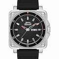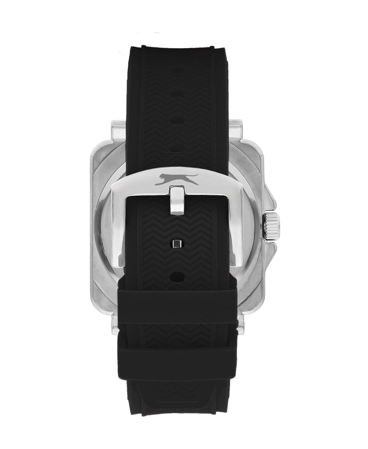 Часы Slazenger SL.09.2233.1.01 — это современная модель, сочетающая стиль и практичность. Корпус квадратной формы выполнен из прочного металла, а круглый черный циферблат придает дизайну особую выразительность. На вращающийся безельБезельВнешний ободок, закрепляющий стекло. В спортивных часах так называется поворотное кольцо с делениями на циферблате, выполняет роль таймера – замеряет отрезки времени на шкале. Неподвижный безель – элемент декора. Однонаправленно вращающийся безель на дайверских часах позволяет фиксировать моменты погружения и выныривания на поверхность. нанесено черное IP-покрытиеIP-покрытиеМетод ионного напыления. Демонстрирует повышенную устойчивость к истиранию, окислению и химическим веществам. Под воздействием высокого давления и температуры около 1500°C молекулы металла надёжно соединяются с частицами корпуса часов.. Резиновый черный ремешок с классической застежкой обеспечивает удобство при повседневном ношении. Модель оснащена кварцевым механизмом, минеральное стеклоМинеральное стеклоМинеральное стекло представляет собой искусственно выращенный минерал кварца. Такое стекло отличается особой устойчивостью к повреждениям и царапинам. Уступает по некоторым качествам сапфировому стеклу., защищающим от случайных повреждений, и водозащитой уровня WR 50, позволяющей не бояться контакта с водой в повседневных ситуациях. На циферблате расположены окошки даты и дня недели. Для удобства использования в темное время суток предусмотрено люминесцентное покрытиеЛюминесцентное покрытиеПозволяет считывать показания времени в темноте. Производители наносят на стрелки, часовые индексы, безель или поверхность циферблата светонакопительный состав, дающий холодное свечение. стрелок. Заводная головка дополнительно защищена от случайных нажатий. Габариты корпуса составляют 43 на 43 мм, толщина — 11 мм.