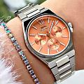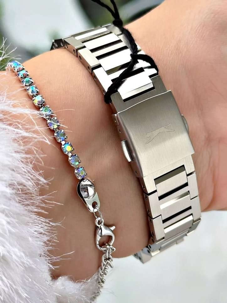 Часы Slazenger SL.09.2243.4.07 сочетают в себе элегантный дизайн и практичность для повседневного использования. Модель выполнена в изысканном серебряном цвете, корпус и браслет изготовлены из прочного металла, что обеспечивает надежность и долговечность изделия. Кварцевый механизм гарантирует точность хода, а минеральное стеклоМинеральное стеклоМинеральное стекло представляет собой искусственно выращенный минерал кварца. Такое стекло отличается особой устойчивостью к повреждениям и царапинам. Уступает по некоторым качествам сапфировому стеклу. защищает оранжевый циферблат от механических повреждений. Диаметр корпуса составляет 34 мм, толщина — 9 мм, ширина ремешка — 20 мм, а общий вес часов — всего 87 грамм, что делает их легкими и комфортными на руке. Уровень водозащиты WR 30 позволяет не беспокоиться о случайных брызгах. Для удобства использования в темное время суток предусмотрено люминесцентное покрытиеЛюминесцентное покрытиеПозволяет считывать показания времени в темноте. Производители наносят на стрелки, часовые индексы, безель или поверхность циферблата светонакопительный состав, дающий холодное свечение. стрелок и меток. Дополнительные малые циферблаты отображают дату, день недели и время в 24-часовом формате. Часы оснащены металлическим браслетом с надежной раскладной застёжкойРаскладная застёжкаТакой тип застёжки используется только на браслетах из металла. Она никогда не раскрывается полностью, происходит разделение на 2 и более частей. Раскладывающая застёжка снизит вероятность потери часов к минимуму..