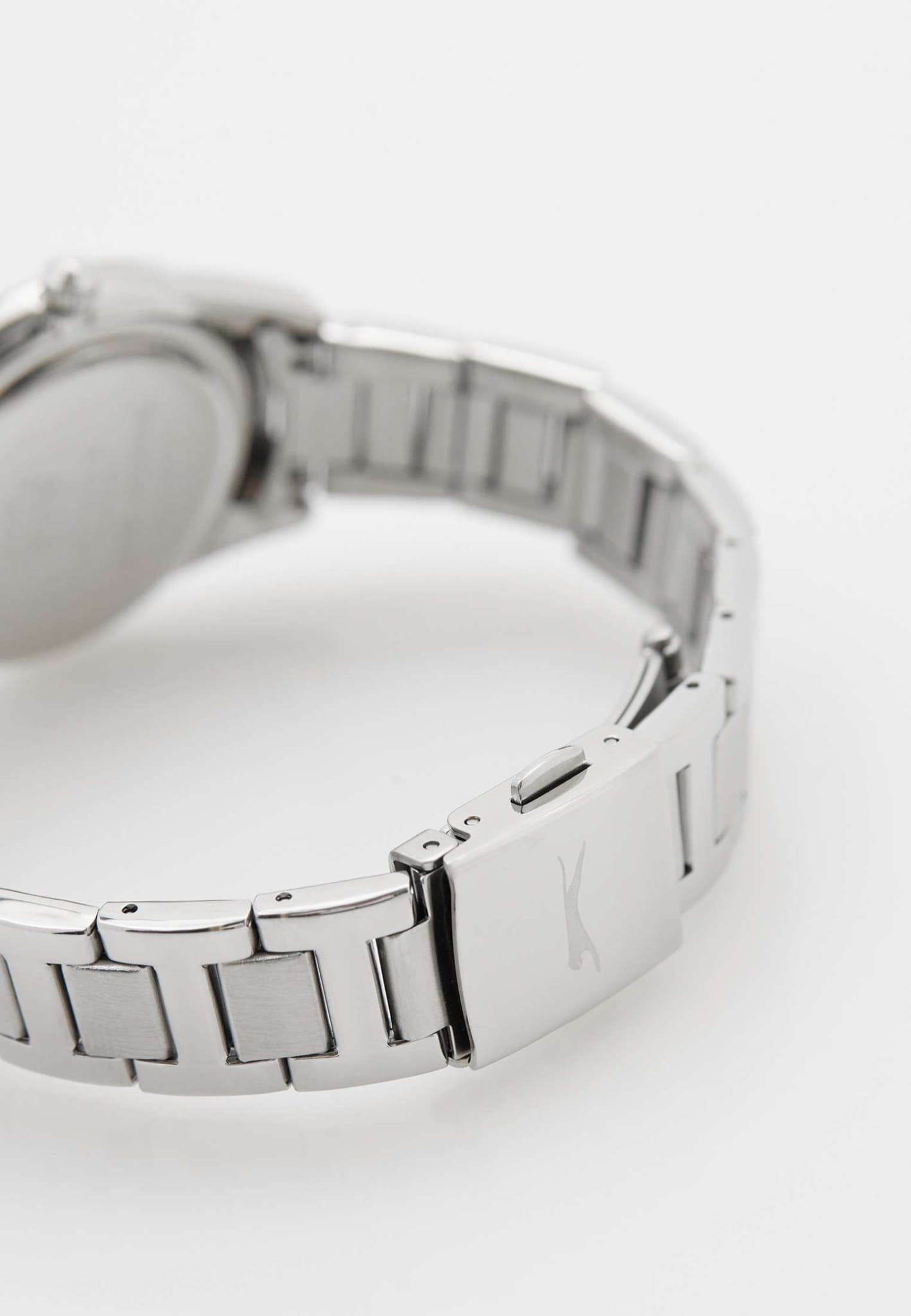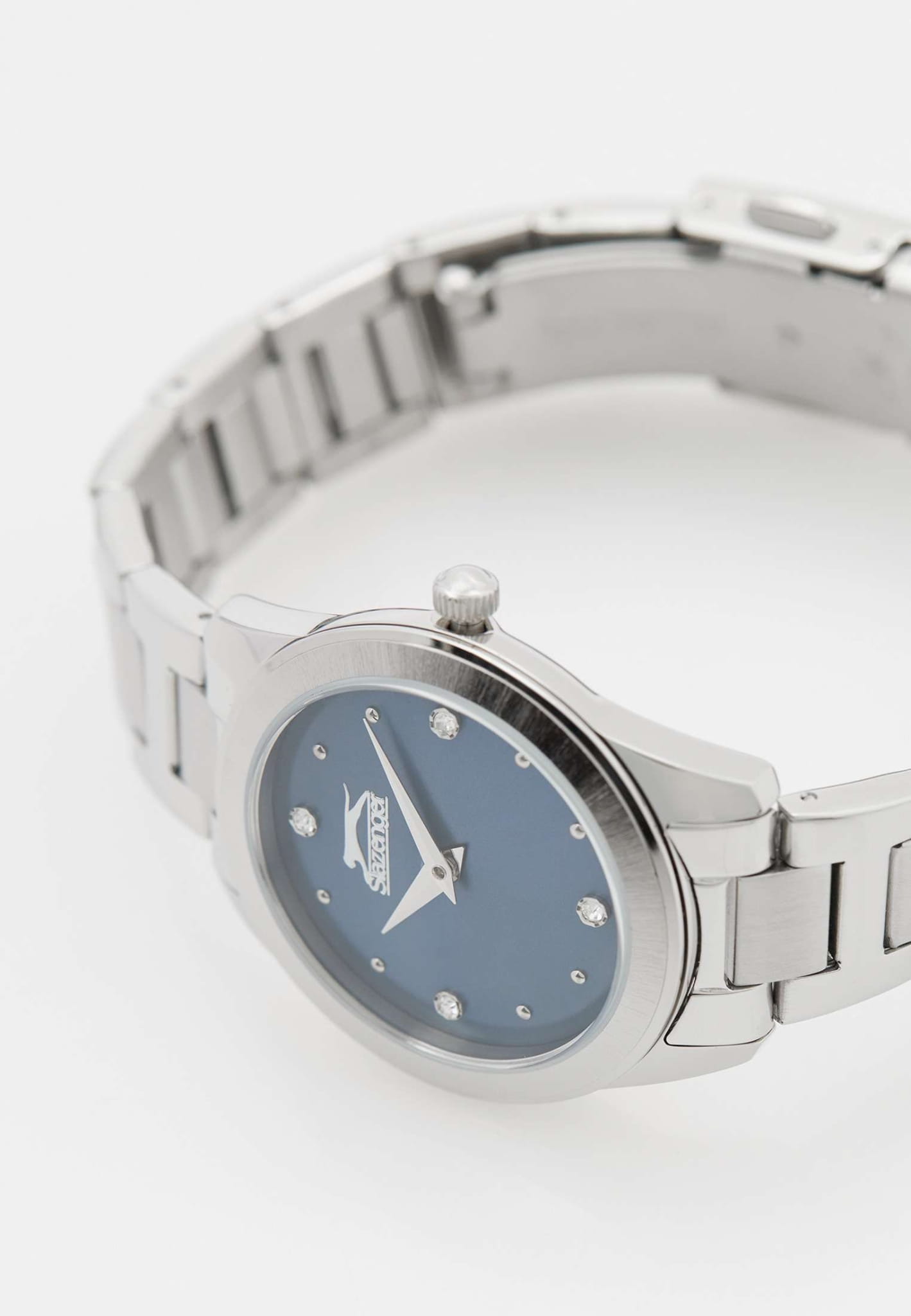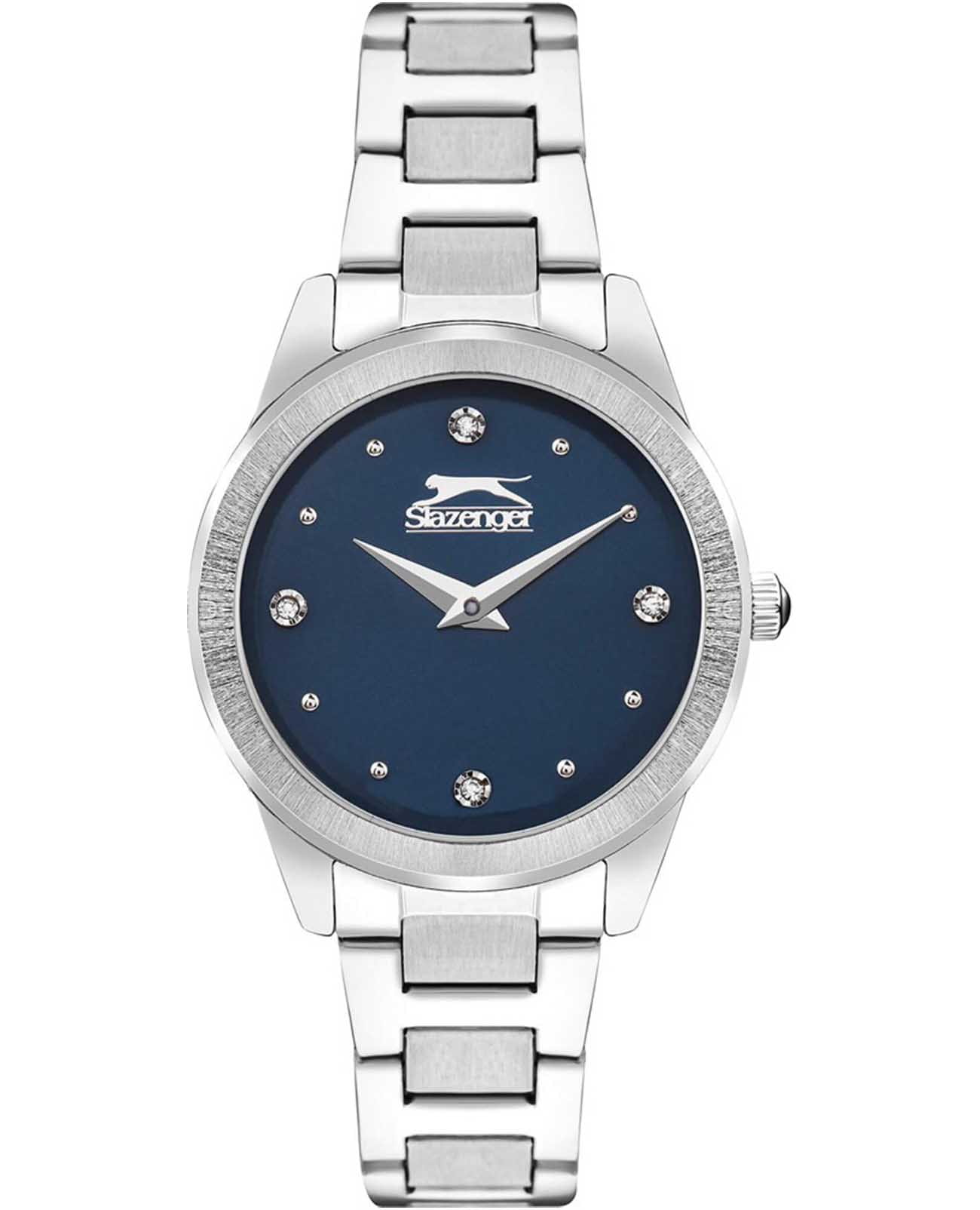 Часы Slazenger SL.09.2253.3.05 — это стильная и элегантная модель, созданная для тех, кто ценит утонченность и надежность. Корпус выполнен из прочного металла, а изящный серебристый браслет оснащён удобной раскладной застёжкойРаскладная застёжкаТакой тип застёжки используется только на браслетах из металла. Она никогда не раскрывается полностью, происходит разделение на 2 и более частей. Раскладывающая застёжка снизит вероятность потери часов к минимуму.. Минеральное стеклоМинеральное стеклоМинеральное стекло представляет собой искусственно выращенный минерал кварца. Такое стекло отличается особой устойчивостью к повреждениям и царапинам. Уступает по некоторым качествам сапфировому стеклу. защищает синий циферблат, украшенный сияющими кристаллами, придающими аксессуару особый шарм. Кварцевый механизм обеспечивает точность хода, а водозащита класса WR 30 позволяет не беспокоиться о случайных брызгах. Диаметр корпуса составляет 33 мм, ширина браслета — 16 мм, толщина корпуса — 8 мм, что делает эти часы аккуратными и комфортными для повседневной носки. Модель весит 70 грамм. Часы прекрасно дополнят как деловой, так и повседневный образ, подчеркивая индивидуальность своей обладательницы.