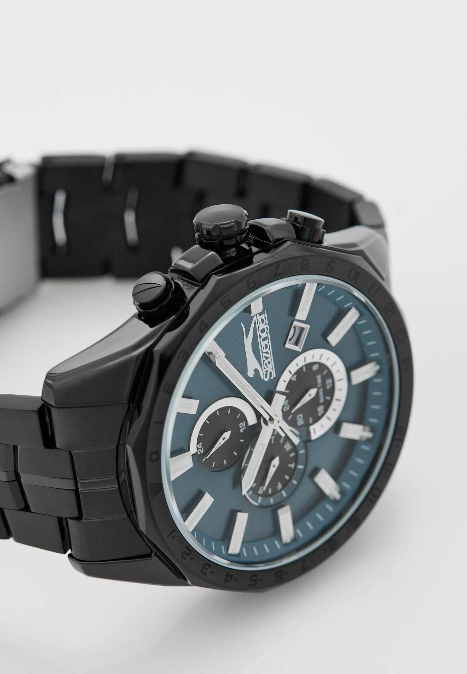 Часы Slazenger SL.09.2259.2.02 — это стильный и многофункциональный аксессуар, который станет достойным дополнением к вашему образу. Корпус и браслет модели выполнены из современного суперметалла с черным IP-покрытиеIP-покрытиеМетод ионного напыления. Демонстрирует повышенную устойчивость к истиранию, окислению и химическим веществам. Под воздействием высокого давления и температуры около 1500°C молекулы металла надёжно соединяются с частицами корпуса часов. — прочного сплава на основе меди с пониженным содержанием цинка и никеля, а также инновационным покрытием, что обеспечивает долговечность и привлекательный внешний вид. На безельБезельВнешний ободок, закрепляющий стекло. В спортивных часах так называется поворотное кольцо с делениями на циферблате, выполняет роль таймера – замеряет отрезки времени на шкале. Неподвижный безель – элемент декора. Однонаправленно вращающийся безель на дайверских часах позволяет фиксировать моменты погружения и выныривания на поверхность. нанесено также черное IP-покрытиеIP-покрытиеМетод ионного напыления. Демонстрирует повышенную устойчивость к истиранию, окислению и химическим веществам. Под воздействием высокого давления и температуры около 1500°C молекулы металла надёжно соединяются с частицами корпуса часов., что придает аксессуару утончённый и универсальный внешний вид. Под минеральным стекломМинеральное стеклоМинеральное стекло представляет собой искусственно выращенный минерал кварца. Такое стекло отличается особой устойчивостью к повреждениям и царапинам. Уступает по некоторым качествам сапфировому стеклу. находится насыщенно синий циферблат с дополнительными функциями: вынесенный 24-часовой индикатор, указатель дня недели, окно даты в положении между 4 и 5 часами, а также функция GMTGMTОтображение времени второго часового пояса.Такая функция особенно актуальна для путешественников и бизнесменов,которые общаются с людьми из разных стран,теперь вы всегда будете знать,какой час у вашего партнёра или близкого человека. для отслеживания второго часового поясаВторой часовой поясФункция, позволяющая отображать время двух часовых поясов одновременно. — всё это делает модель особенно удобной при активном образе жизни и путешествиях. Кварцевый механизм гарантирует высокую точность хода. Диаметр корпуса составляет 46 мм, толщина — 12 мм, что подчёркивает современный характер часов. Стрелки с люминесцентным покрытиемЛюминесцентное покрытиеПозволяет считывать показания времени в темноте. Производители наносят на стрелки, часовые индексы, безель или поверхность циферблата светонакопительный состав, дающий холодное свечение. удобно подсвечиваются в темноте после зарядки на свету. Стальной браслет с раскладной застёжкойРаскладная застёжкаТакой тип застёжки используется только на браслетах из металла. Она никогда не раскрывается полностью, происходит разделение на 2 и более частей. Раскладывающая застёжка снизит вероятность потери часов к минимуму. обеспечивает комфортную посадку. Водозащита до 5 атмосфер позволяет не опасаться случайных брызг или дождя. Часы идеально подходят для ежедневного ношения и особых случаев, а также станут отличным подарком.