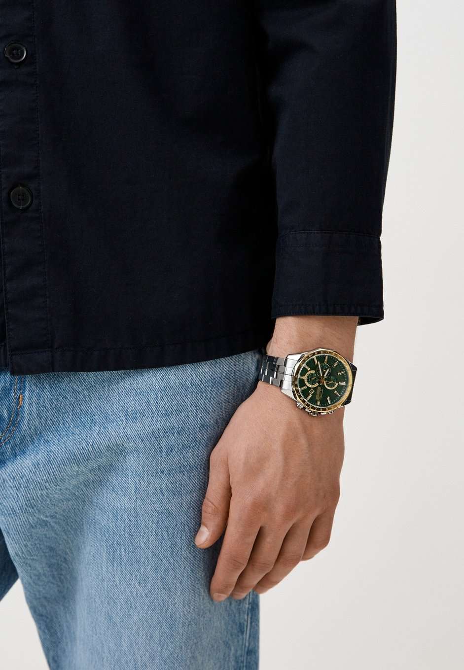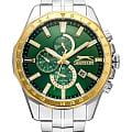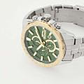 Часы Slazenger SL.09.2259.2.04 — это стильный и многофункциональный аксессуар, который станет достойным дополнением к вашему образу. Корпус и браслет модели выполнены из современного суперметалла — прочного сплава на основе меди с пониженным содержанием цинка и никеля, а также инновационным покрытием, что обеспечивает долговечность и привлекательный внешний вид. На безельБезельВнешний ободок, закрепляющий стекло. В спортивных часах так называется поворотное кольцо с делениями на циферблате, выполняет роль таймера – замеряет отрезки времени на шкале. Неподвижный безель – элемент декора. Однонаправленно вращающийся безель на дайверских часах позволяет фиксировать моменты погружения и выныривания на поверхность. нанесено золотистое IP-покрытиеIP-покрытиеМетод ионного напыления. Демонстрирует повышенную устойчивость к истиранию, окислению и химическим веществам. Под воздействием высокого давления и температуры около 1500°C молекулы металла надёжно соединяются с частицами корпуса часов., что придает аксессуару утончённый и универсальный внешний вид. Под минеральным стекломМинеральное стеклоМинеральное стекло представляет собой искусственно выращенный минерал кварца. Такое стекло отличается особой устойчивостью к повреждениям и царапинам. Уступает по некоторым качествам сапфировому стеклу. находится зеленый циферблат с дополнительными функциями: вынесенный 24-часовой индикатор, указатель дня недели, окно даты в положении между 4 и 5 часами, а также функция GMTGMTОтображение времени второго часового пояса.Такая функция особенно актуальна для путешественников и бизнесменов,которые общаются с людьми из разных стран,теперь вы всегда будете знать,какой час у вашего партнёра или близкого человека. для отслеживания второго часового поясаВторой часовой поясФункция, позволяющая отображать время двух часовых поясов одновременно. — всё это делает модель особенно удобной при активном образе жизни и путешествиях. Кварцевый механизм гарантирует высокую точность хода. Диаметр корпуса составляет 46 мм, толщина — 12 мм, что подчёркивает современный характер часов. Стрелки с люминесцентным покрытиемЛюминесцентное покрытиеПозволяет считывать показания времени в темноте. Производители наносят на стрелки, часовые индексы, безель или поверхность циферблата светонакопительный состав, дающий холодное свечение. удобно подсвечиваются в темноте после зарядки на свету. Стальной браслет с раскладной застёжкойРаскладная застёжкаТакой тип застёжки используется только на браслетах из металла. Она никогда не раскрывается полностью, происходит разделение на 2 и более частей. Раскладывающая застёжка снизит вероятность потери часов к минимуму. обеспечивает комфортную посадку. Водозащита до 5 атмосфер позволяет не опасаться случайных брызг или дождя. Часы идеально подходят для ежедневного ношения и особых случаев, а также станут отличным подарком.