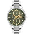 Часы Slazenger SL.09.2284.4.03 — это изящный и функциональный аксессуар, который гармонично дополнит ваш образ и подчеркнет индивидуальность. Корпус и браслет выполнены из инновационного суперметалла — сплава на основе меди с пониженным содержанием цинка и никеля, что обеспечивает долговечность и надежную защиту от внешних воздействий. Зеленый циферблат, защищенный прочным минеральным стекломМинеральное стеклоМинеральное стекло представляет собой искусственно выращенный минерал кварца. Такое стекло отличается особой устойчивостью к повреждениям и царапинам. Уступает по некоторым качествам сапфировому стеклу., оснащен дополнительными индикаторами: отдельные циферблаты отображают 24-часовой формат времени, текущую дату и день недели, что делает использование часов максимально удобным в повседневной жизни. Диаметр корпуса составляет 35 мм, а толщина — 11 мм, благодаря чему модель комфортно располагается на запястье. Браслет с раскладной застёжкойРаскладная застёжкаТакой тип застёжки используется только на браслетах из металла. Она никогда не раскрывается полностью, происходит разделение на 2 и более частей. Раскладывающая застёжка снизит вероятность потери часов к минимуму. обеспечивает комфортную посадку. Метки с люминесцентным покрытиемЛюминесцентное покрытиеПозволяет считывать показания времени в темноте. Производители наносят на стрелки, часовые индексы, безель или поверхность циферблата светонакопительный состав, дающий холодное свечение. удобно подсвечиваются в темноте после зарядки на свету.  Класс водонепроницаемости 3 атм защищает механизм от случайных брызг и капель дождя. Кварцевый механизм гарантирует точность хода и простоту эксплуатации.