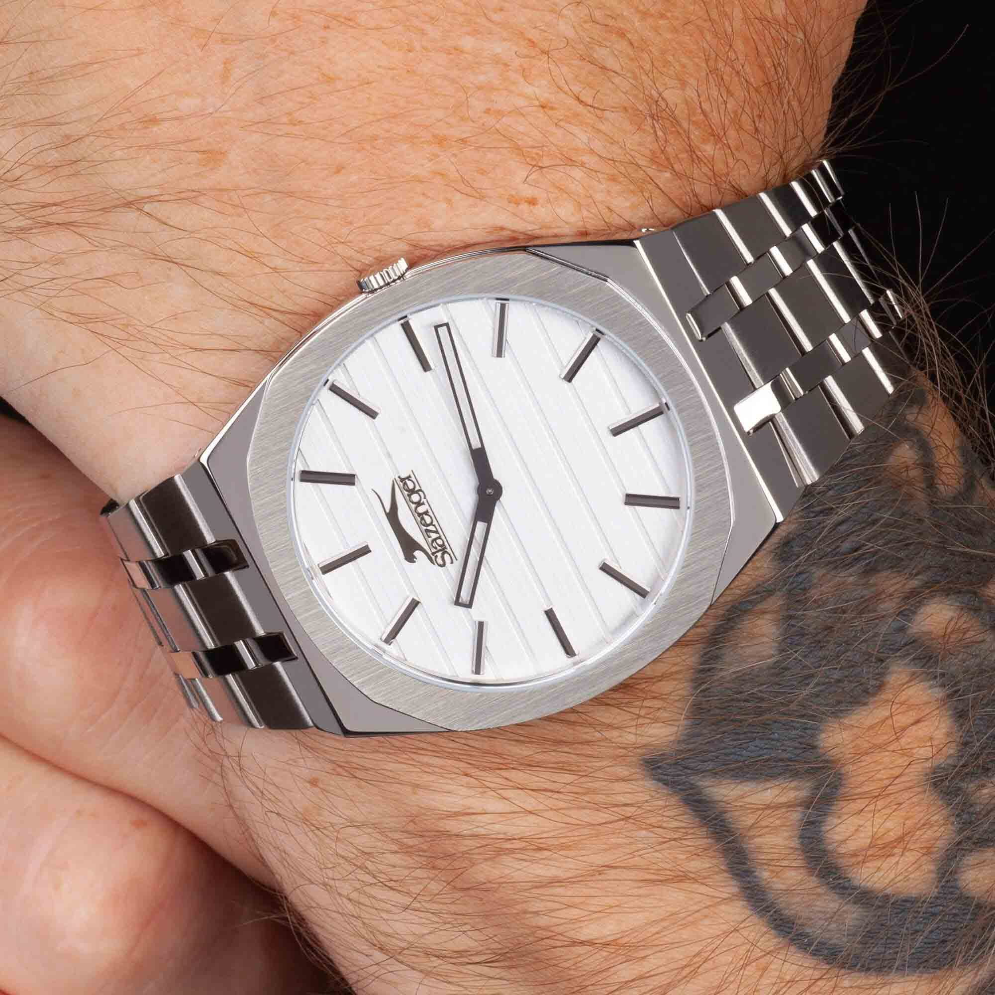 Мужские кварцевые часы Slazenger SL.09.2310.1.01 — это элегантный и стильный аксессуар, идеально дополняющий любой образ. Корпус и браслет выполнены из суперметалла, защищён минеральным стекломМинеральное стеклоМинеральное стекло представляет собой искусственно выращенный минерал кварца. Такое стекло отличается особой устойчивостью к повреждениям и царапинам. Уступает по некоторым качествам сапфировому стеклу.. Циферблат серебристого цвета оформлен в классическом стиле. Браслет из суперметалла фиксируется на раскладной застёжкеРаскладная застёжкаТакой тип застёжки используется только на браслетах из металла. Она никогда не раскрывается полностью, происходит разделение на 2 и более частей. Раскладывающая застёжка снизит вероятность потери часов к минимуму., обеспечивая удобство и надёжность ношения. Водонепроницаемость 50 м позволяет использовать часы в повседневных условиях, защищая от случайных брызг и капель дождя. Модель сочетает в себе лёгкость, прочность и изысканный внешний вид.