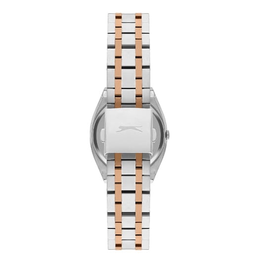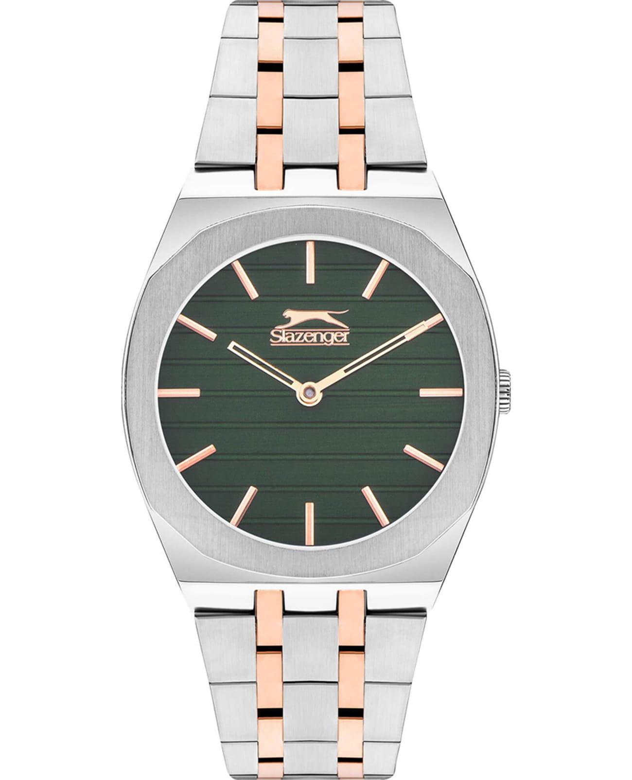 Женские кварцевые часы Slazenger SL.09.2311.3.03 — это элегантный и стильный аксессуар, идеально дополняющий любой образ. Браслет выполнены из суперметалла с IP-покрытиемIP-покрытиеМетод ионного напыления. Демонстрирует повышенную устойчивость к истиранию, окислению и химическим веществам. Под воздействием высокого давления и температуры около 1500°C молекулы металла надёжно соединяются с частицами корпуса часов., защищён минеральным стекломМинеральное стеклоМинеральное стекло представляет собой искусственно выращенный минерал кварца. Такое стекло отличается особой устойчивостью к повреждениям и царапинам. Уступает по некоторым качествам сапфировому стеклу.. Циферблат зелёного цвета оформлен в классическом стиле. Браслет комбинированного цвета фиксируется на раскладной застёжкеРаскладная застёжкаТакой тип застёжки используется только на браслетах из металла. Она никогда не раскрывается полностью, происходит разделение на 2 и более частей. Раскладывающая застёжка снизит вероятность потери часов к минимуму., обеспечивая удобство и надёжность ношения. Водонепроницаемость 30 м позволяет использовать часы в повседневных условиях, защищая от случайных брызг и капель дождя. Модель сочетает в себе лёгкость, прочность и изысканный внешний вид.
