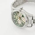 Женские кварцевые часы Slazenger SL.09.2317.4.03 — это выразительный и функциональный аксессуар, сочетающий стиль, прочность и насыщенную комплектацию. Корпус и браслет выполнены из суперметалла. Циферблат зелёного цвета защищён минеральным стекломМинеральное стеклоМинеральное стекло представляет собой искусственно выращенный минерал кварца. Такое стекло отличается особой устойчивостью к повреждениям и царапинам. Уступает по некоторым качествам сапфировому стеклу. и оформлен с вынесенными малыми циферблатами для индикации дня недели, даты и времени в 24-часовом формате. Стрелки и метки оснащены люминесцентным покрытиемЛюминесцентное покрытиеПозволяет считывать показания времени в темноте. Производители наносят на стрелки, часовые индексы, безель или поверхность циферблата светонакопительный состав, дающий холодное свечение., обеспечивающим хорошую читаемость в темноте. Браслет из суперметалла фиксируется на раскладной застёжкеРаскладная застёжкаТакой тип застёжки используется только на браслетах из металла. Она никогда не раскрывается полностью, происходит разделение на 2 и более частей. Раскладывающая застёжка снизит вероятность потери часов к минимуму., обеспечивая удобство и надёжность ношения. Водонепроницаемость 30 м позволяет использовать часы в повседневных условиях, защищая от случайных брызг и капель дождя. Модель подчёркивает индивидуальность владельца и идеально подходит как для повседневного, так и для торжественного образа.