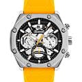 Мужские кварцевые часы Slazenger SL.09.2319.2.06 - это выразительный и функциональный аксессуар, сочетающий стиль, технологичность и насыщенную комплектацию. Корпус выполнен из суперметалла. Циферблат защищён минеральным стекломМинеральное стеклоМинеральное стекло представляет собой искусственно выращенный минерал кварца. Такое стекло отличается особой устойчивостью к повреждениям и царапинам. Уступает по некоторым качествам сапфировому стеклу., частично скелетонизирован, что позволяет наблюдать за работой механизма. Часы оснащены вынесенными малыми циферблатами для индикации дня недели, даты и времени в 24-часовом формате. Стрелки и метки оснащены люминесцентным покрытиемЛюминесцентное покрытиеПозволяет считывать показания времени в темноте. Производители наносят на стрелки, часовые индексы, безель или поверхность циферблата светонакопительный состав, дающий холодное свечение., обеспечивающим хорошую читаемость в темноте. Удобный силиконовый ремешок жёлтого цвета фиксируется на классической пряжке. Водонепроницаемость 50 м позволяет использовать часы в повседневных условиях, защищая от случайных брызг и капель дождя. Модель подчёркивает индивидуальность владельца и идеально подходит как для повседневного, так и для спортивного образа.