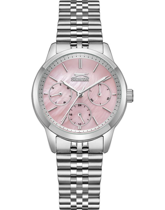 Женские наручные часы Slazenger SL.09.2336.4.08 сочетают в себе современный стиль и функциональность. Корпус выполнен из суперметалла, что придаёт модели дополнительную прочность и элегантный внешний вид. Циферблат защищён минеральным стекломМинеральное стеклоМинеральное стекло представляет собой искусственно выращенный минерал кварца. Такое стекло отличается особой устойчивостью к повреждениям и царапинам. Уступает по некоторым качествам сапфировому стеклу., устойчивым к царапинам и повреждениям. Часы оснащены дополнительными циферблатами, отображающими дату, день недели и 24-часовой формат времени, что добавляет практичности в повседневном использовании. Браслет из суперметалла и раскладной застёжкойРаскладная застёжкаТакой тип застёжки используется только на браслетах из металла. Она никогда не раскрывается полностью, происходит разделение на 2 и более частей. Раскладывающая застёжка снизит вероятность потери часов к минимуму. обеспечивает надёжную фиксацию и комфорт при ношении. Эта модель идеально подходит для женщин, ценящих стиль, функциональность и надёжность в одном аксессуаре.