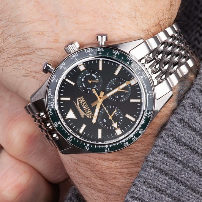 Мужские кварцевые часы Slazenger SL.09.2360.2.04 – идеальное сочетание классического дизайна и современных технологий, созданное для уверенных в себе мужчин. Корпус выполнен из суперметалла серебристого цвета, диаметром 43 мм и толщиной 12 мм, подчёркивает надежность модели и делает их идеальным аксессуаром для любой ситуации – будь то деловая встреча или повседневные выходы. Циферблат надёжно защищён минеральным стекломМинеральное стеклоМинеральное стекло представляет собой искусственно выращенный минерал кварца. Такое стекло отличается особой устойчивостью к повреждениям и царапинам. Уступает по некоторым качествам сапфировому стеклу., которое устойчиво к механическим повреждениям и сохраняет кристальную прозрачность. Неподвижный безельБезельВнешний ободок, закрепляющий стекло. В спортивных часах так называется поворотное кольцо с делениями на циферблате, выполняет роль таймера – замеряет отрезки времени на шкале. Неподвижный безель – элемент декора. Однонаправленно вращающийся безель на дайверских часах позволяет фиксировать моменты погружения и выныривания на поверхность. с IP-покрытиемIP-покрытиеМетод ионного напыления. Демонстрирует повышенную устойчивость к истиранию, окислению и химическим веществам. Под воздействием высокого давления и температуры около 1500°C молекулы металла надёжно соединяются с частицами корпуса часов. зеленого цвета. Стальной браслет на раскладной застёжкеРаскладная застёжкаТакой тип застёжки используется только на браслетах из металла. Она никогда не раскрывается полностью, происходит разделение на 2 и более частей. Раскладывающая застёжка снизит вероятность потери часов к минимуму. удобно облегает запястье, обеспечивая надёжность и комфорт в повседневном ношении. Стрелки и метки покрыты люминесцентным покрытиемЛюминесцентное покрытиеПозволяет считывать показания времени в темноте. Производители наносят на стрелки, часовые индексы, безель или поверхность циферблата светонакопительный состав, дающий холодное свечение., обеспечивающим отличную читаемость в темноте. Эти часы станут не просто аксессуаром, а надежным спутником в любой ситуации, подчеркивая ваш безупречный вкус и деловой стиль. Вынесенный циферблат с 24-х часовым указателем времени и функция тахиметраТахиметрРазмеченная шкала, располагается на ободке или безеле часов. Тахиметр позволяет рассчитать скорость на определённом участке пути, расстояние измеряется в километрах или милях.. Водозащита 50 метров позволит защитить корпус от случайных брызг или капель дождя.