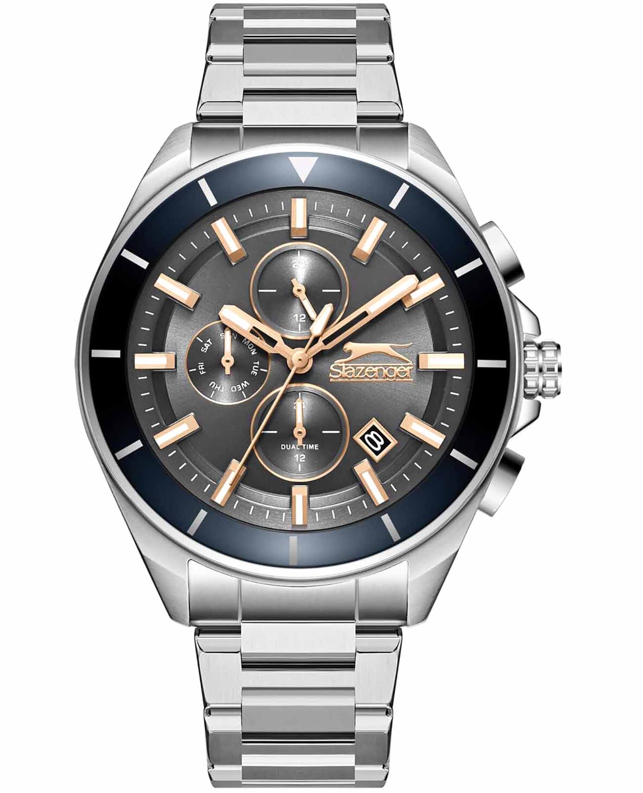 Часы Slazenger SL.09.2393.2.03 представляют собой стильное и функциональное дополнение к вашему образу. Их серый циферблат и корпус с безелемБезельВнешний ободок, закрепляющий стекло. В спортивных часах так называется поворотное кольцо с делениями на циферблате, выполняет роль таймера – замеряет отрезки времени на шкале. Неподвижный безель – элемент декора. Однонаправленно вращающийся безель на дайверских часах позволяет фиксировать моменты погружения и выныривания на поверхность. из нержавеющей стали с IP-покрытиемIP-покрытиеМетод ионного напыления. Демонстрирует повышенную устойчивость к истиранию, окислению и химическим веществам. Под воздействием высокого давления и температуры около 1500°C молекулы металла надёжно соединяются с частицами корпуса часов. создают элегантный и современный вид, который подчеркнет вашу индивидуальность. Эти мужские часы оснащены кварцевым механизмом, обеспечивающим точность хода. Минеральное стеклоМинеральное стеклоМинеральное стекло представляет собой искусственно выращенный минерал кварца. Такое стекло отличается особой устойчивостью к повреждениям и царапинам. Уступает по некоторым качествам сапфировому стеклу. защищает циферблат от царапин, а люминесцентное покрытиеЛюминесцентное покрытиеПозволяет считывать показания времени в темноте. Производители наносят на стрелки, часовые индексы, безель или поверхность циферблата светонакопительный состав, дающий холодное свечение. на стрелках и метках позволяют легко считывать время даже в темноте. Функциональность часов дополнена 24-часовым указателем времени, календарем даты и дня недели. Стальной браслет с раскладной застёжкойРаскладная застёжкаТакой тип застёжки используется только на браслетах из металла. Она никогда не раскрывается полностью, происходит разделение на 2 и более частей. Раскладывающая застёжка снизит вероятность потери часов к минимуму. гармонично дополняет общий дизайн. Размер корпуса составляет 44 мм в диаметре и 13 мм в толщину, что делает их удобными для повседневного ношения. А водозащита уровня 100 ATM делает их надежными спутниками даже в условиях повышенной влажности.