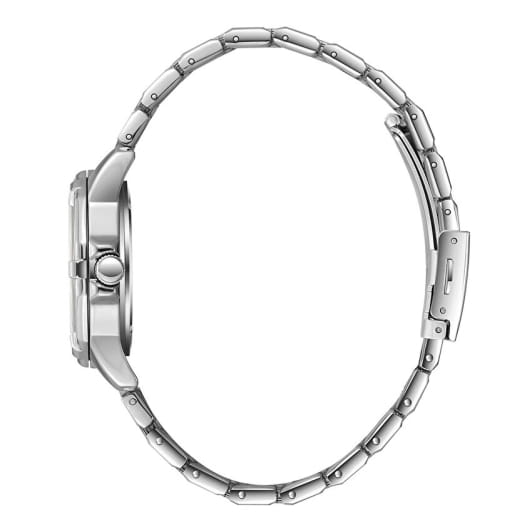 Женские кварцевые часы Slazenger — это элегантный и функциональный аксессуар. Корпус диаметром 33,5 мм и толщиной 10,5 мм выполнен из суперметалла. Циферблат серебристого цвета оформлен индексами и стрелками, украшен фианитами. Циферблат защищён минеральным стекломМинеральное стеклоМинеральное стекло представляет собой искусственно выращенный минерал кварца. Такое стекло отличается особой устойчивостью к повреждениям и царапинам. Уступает по некоторым качествам сапфировому стеклу.. Механизм — кварцевый. Часы оснащены индикацией дня недели, даты и 12/24-часового формата времени. Часы оснащены браслетом из суперметалла с раскладной застёжкойРаскладная застёжкаТакой тип застёжки используется только на браслетах из металла. Она никогда не раскрывается полностью, происходит разделение на 2 и более частей. Раскладывающая застёжка снизит вероятность потери часов к минимуму.. Водонепроницаемость 50 м позволяет использовать часы в повседневных условиях. Гарантия — 12 месяцев. Идеальный выбор для тех, кто ценит стиль, функциональность и качество.