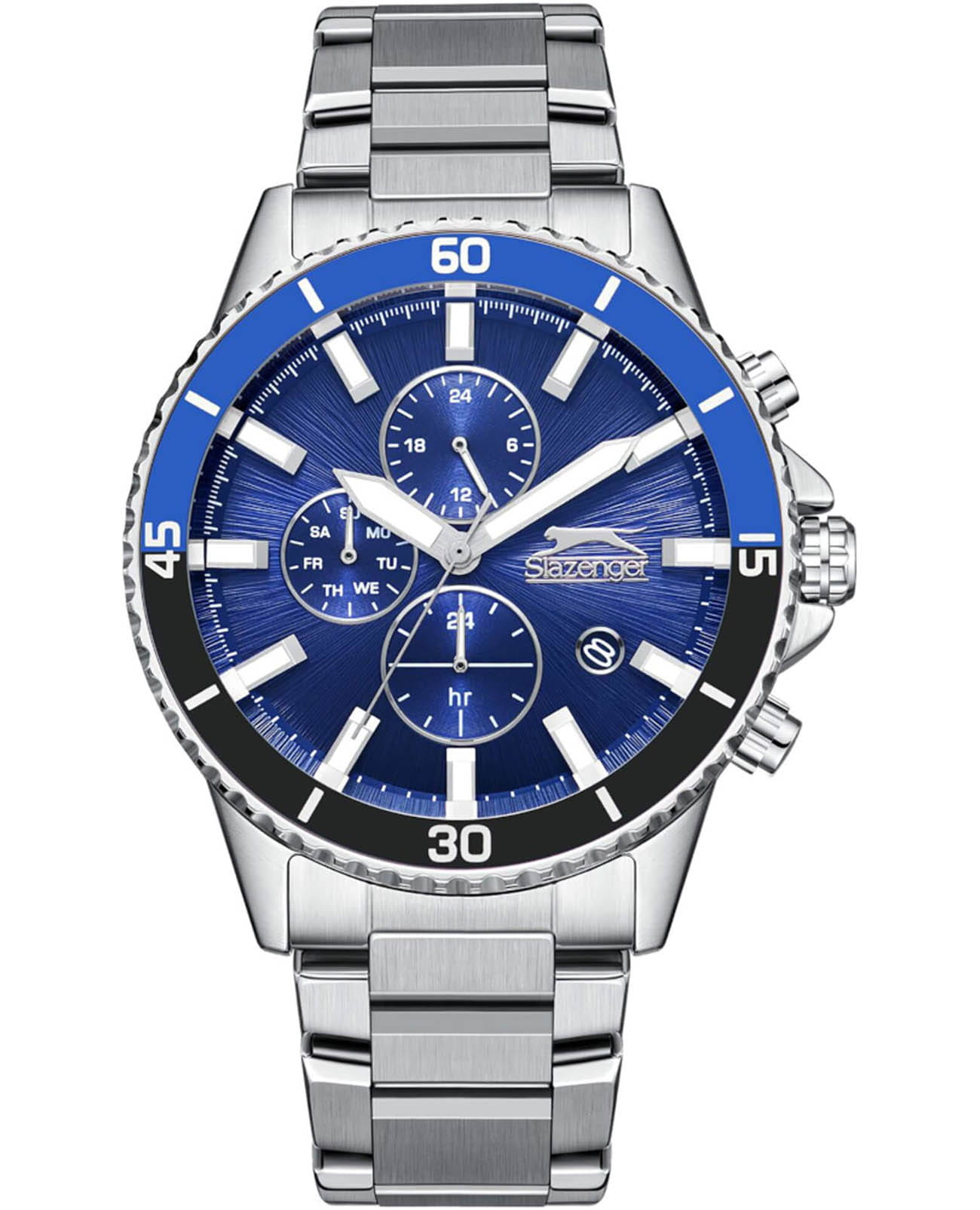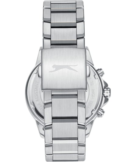 Мужские кварцевые часы Slazenger — это выразительный и функциональный аксессуар. Корпус диаметром 44 мм и толщиной 13 мм выполнен из суперметалла. БезельБезельВнешний ободок, закрепляющий стекло. В спортивных часах так называется поворотное кольцо с делениями на циферблате, выполняет роль таймера – замеряет отрезки времени на шкале. Неподвижный безель – элемент декора. Однонаправленно вращающийся безель на дайверских часах позволяет фиксировать моменты погружения и выныривания на поверхность. из суперметалла с IP-покрытиемIP-покрытиеМетод ионного напыления. Демонстрирует повышенную устойчивость к истиранию, окислению и химическим веществам. Под воздействием высокого давления и температуры около 1500°C молекулы металла надёжно соединяются с частицами корпуса часов.. Циферблат синего цвета оформлен индексами и стрелками. Циферблат защищён минеральным стекломМинеральное стеклоМинеральное стекло представляет собой искусственно выращенный минерал кварца. Такое стекло отличается особой устойчивостью к повреждениям и царапинам. Уступает по некоторым качествам сапфировому стеклу.. Механизм — кварцевый калибр. Часы оснащены индикацией дня недели, даты и 12/24-часового формата времени. Окошко даты расположено между 4 и 5 часами. Часы оснащены браслетом из суперметалла с раскладной застёжкойРаскладная застёжкаТакой тип застёжки используется только на браслетах из металла. Она никогда не раскрывается полностью, происходит разделение на 2 и более частей. Раскладывающая застёжка снизит вероятность потери часов к минимуму.. Водонепроницаемость 100 м позволяет использовать часы для плавания и повседневного ношения. Гарантия — 12 месяцев. Идеальный выбор для тех, кто ценит стиль, функциональность и качество.