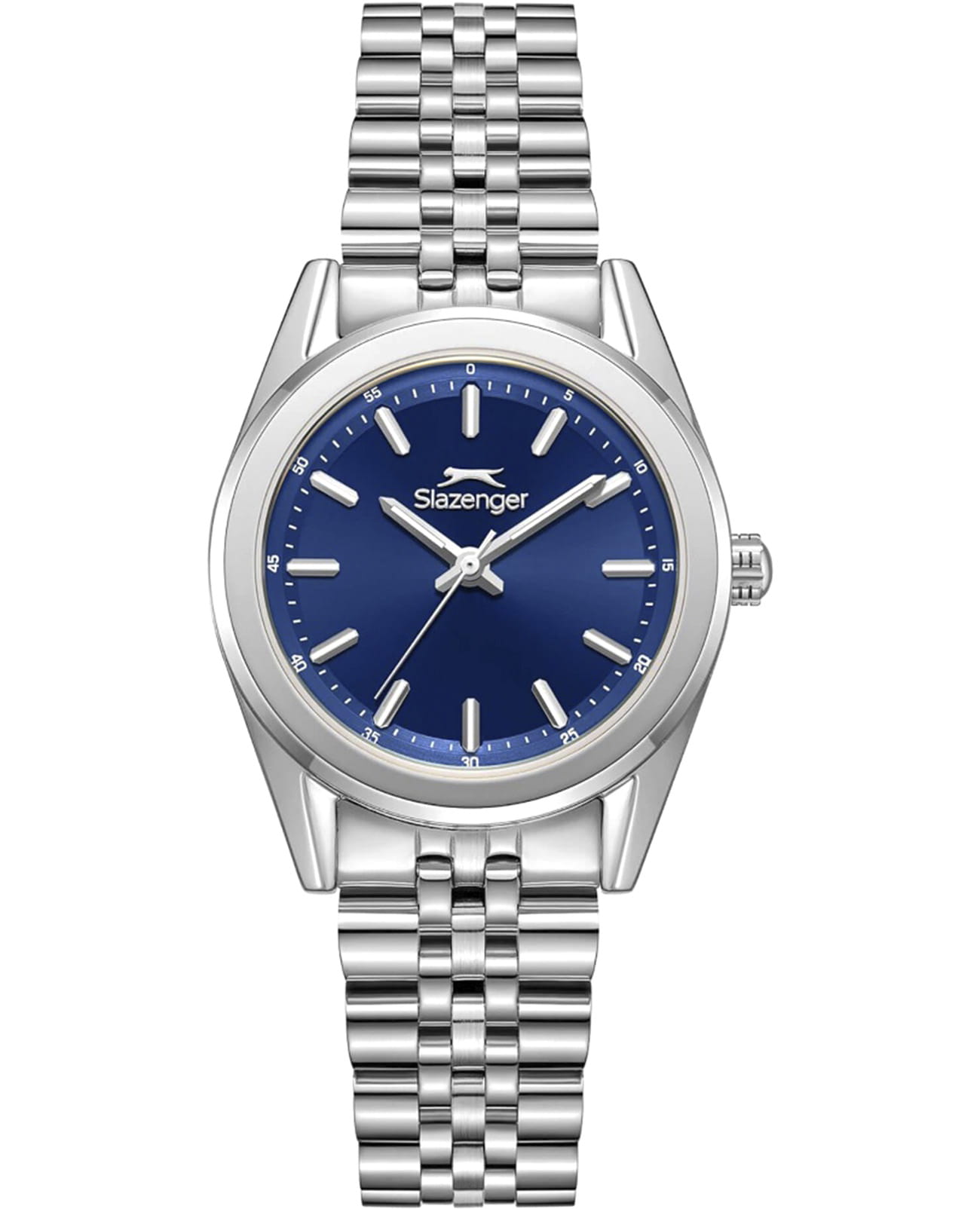 Женские кварцевые часы Slazenger — это элегантный аксессуар. Корпус диаметром 32 мм и толщиной 10 мм выполнен из суперметалла. Циферблат синего цвета оформлен индексами и стрелками. Циферблат защищён минеральным стекломМинеральное стеклоМинеральное стекло представляет собой искусственно выращенный минерал кварца. Такое стекло отличается особой устойчивостью к повреждениям и царапинам. Уступает по некоторым качествам сапфировому стеклу.. Механизм — кварцевый. Стрелки и метки с люминесцентным покрытиемЛюминесцентное покрытиеПозволяет считывать показания времени в темноте. Производители наносят на стрелки, часовые индексы, безель или поверхность циферблата светонакопительный состав, дающий холодное свечение., обеспечивающим хорошую читаемость в темноте. Часы оснащены браслетом из суперметалла с раскладной застёжкойРаскладная застёжкаТакой тип застёжки используется только на браслетах из металла. Она никогда не раскрывается полностью, происходит разделение на 2 и более частей. Раскладывающая застёжка снизит вероятность потери часов к минимуму.. Водонепроницаемость 50 м позволяет использовать часы в повседневных условиях. Гарантия — 12 месяцев. Идеальный выбор для тех, кто ценит стиль и качество.