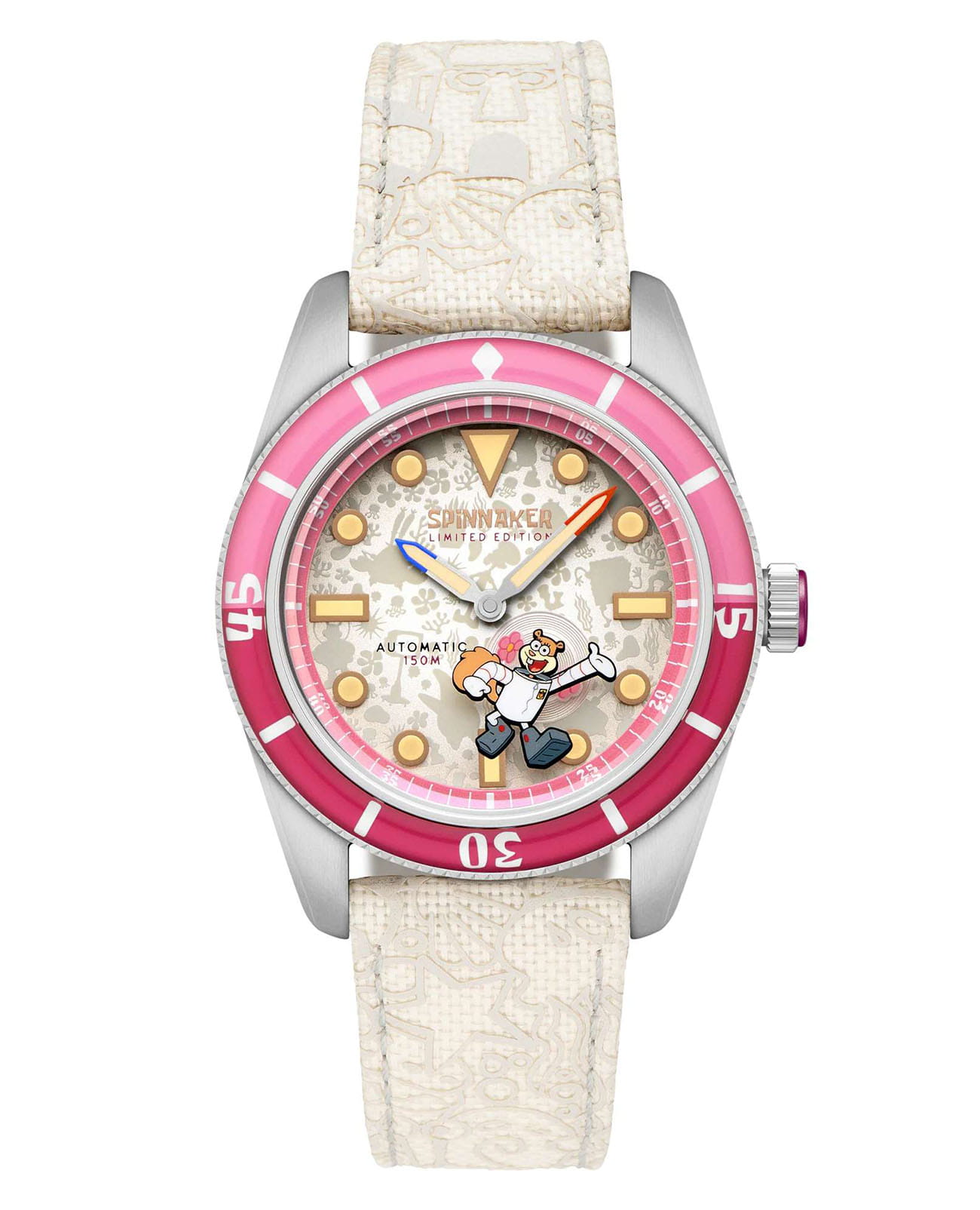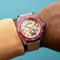 Мужские механические часы с автоподзаводом Spinnaker — это стильный и функциональный аксессуар. Корпус диаметром 43 мм и толщиной 13 мм выполнен из нержавеющей стали. БезельБезельВнешний ободок, закрепляющий стекло. В спортивных часах так называется поворотное кольцо с делениями на циферблате, выполняет роль таймера – замеряет отрезки времени на шкале. Неподвижный безель – элемент декора. Однонаправленно вращающийся безель на дайверских часах позволяет фиксировать моменты погружения и выныривания на поверхность. с IP-покрытиемIP-покрытиеМетод ионного напыления. Демонстрирует повышенную устойчивость к истиранию, окислению и химическим веществам. Под воздействием высокого давления и температуры около 1500°C молекулы металла надёжно соединяются с частицами корпуса часов.. Циферблат бежевого цвета оформлен штрихами, точками и стрелками. Присутствует малая секундная стрелка. Стрелки и метки с люминесцентным покрытиемЛюминесцентное покрытиеПозволяет считывать показания времени в темноте. Производители наносят на стрелки, часовые индексы, безель или поверхность циферблата светонакопительный состав, дающий холодное свечение. Super-LumiNova, обеспечивающим хорошую читаемость в темноте. Циферблат защищён сапфировым стекломСапфировое стеклоПрочный и надёжный материал из кристалла сапфира синтетического происхождения, характеризующийся особой твёрдостью и устойчивостью к царапинам и повреждениям. с антибликовым покрытиемАнтибликовое покрытиеСлой оксида металла в 0,13-0,3 микрон, благодаря которому стекло часов не бликует и не отражает свет. Антибликовое покрытие уменьшает отражение света в 10 раз, обеспечивая отличную читаемость показателей циферблата.. Завинчивающаяся заводная головка повышает водонепроницаемость. Часы оснащены бежевым нейлоновым ремешком на стандартной пряжке. Водонепроницаемость 150 м позволяет использовать часы для плавания. Идеальный выбор для тех, кто ценит качество и нестандартный дизайн.