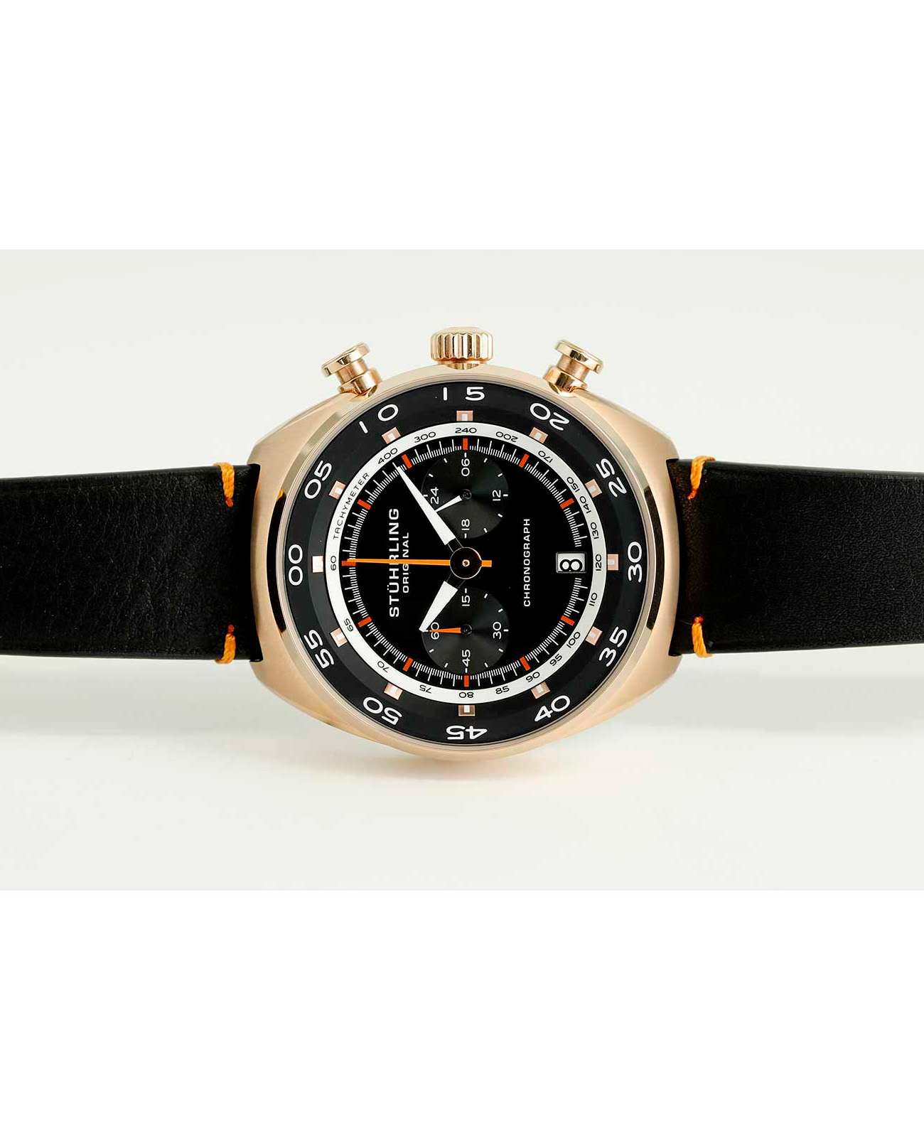 Мужские наручные часы-хронографХронографФункция позволяет измерять отрезки времени с особой точностью: часы, минуты, секунды. Верным признаком хронографа является наличие на циферблате 3 дополнительных окошек-счётчиков. Stuhrling 1000.03 из коллекции Monaco сочетают в себе спортивный дизайн и функциональность, необходимую для активного образа жизни . Модель обладает круглым корпусом, изготовленным из нержавеющей стали с PVD-покрытиемPVDУльтратонкое покрытие наносится в технике вакуумного напыления, сочетает в себе нитрид титана особой прочности со слоем золота или оксида хрома. Несёт в себе декоративную или защитную функцию., что обеспечивает высокую устойчивость к внешним воздействиям. Циферблат оснащен накладными метками в виде штрихов и окном даты в положении «6 часов», что добавляет практичности в ежедневном использовании . Для защиты циферблата используется стекло KrysternaKrysternaKrysterna — инновационное стекло для наручных часов. Благодаря уникальной структуре, Krysterna объединяет ключевые преимущества двух материалов: твердость сапфира, защищающую от царапин, и гибкость минерального стекла, обеспечивающую устойчивость к деформациям. Такая комбинация делает его идеальным решением для часов, подверженных экстремальным нагрузкам, сохраняя при этом оптическую прозрачность., которое надежно защищает от царапин и механических повреждений. Часы оснащены функцией секундомераСекундомерСекундоме́р — прибор, способный измерять интервалы времени с точностью до долей секунды., позволяющей измерять короткие промежутки времени с точностью . Стрелки с люминесцентным покрытиемЛюминесцентное покрытиеПозволяет считывать показания времени в темноте. Производители наносят на стрелки, часовые индексы, безель или поверхность циферблата светонакопительный состав, дающий холодное свечение.. Ремешок выполнен из кожи с классической застежкой, гарантирующей комфортное ношение . Кварцевый механизм обеспечивает высокую точность хода без необходимости подзаводки, что делает использование часов максимально удобным . Водонепроницаемость модели достигает 5 атмосфер (50 метров), что позволяет использовать их в повседневной жизни, однако они не предназначены для плавания или дайвинга . Спортивный дизайн и широкий функционал делают эти часы универсальным аксессуаром для активных людей.
