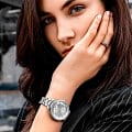 Женские наручные часы Stuhrling 3908.2 из коллекции Symphony сочетают в себе элегантный дизайн и функциональность. Модель обладает круглым корпусом диаметром 40,0 мм, изготовленным из металла , что обеспечивает прочность и устойчивость к внешним воздействиям. Браслет выполнен из стали с раскладной застежкойРаскладной замокДанный вариант застежки используется только на часах с металлическим браслетом. Отличительная особенность такого крепления в том, что длина браслета становится универсальной и вы можете самостоятельно отрегулировать нужный вам размер – застежка просто двигается по браслету часов., гарантируя комфортное ношение и безопасность . Серебристый циферблат украшен римскими цифрами и накладными метками, подчеркивающими классический стиль модели . Для защиты используется стекло KrysternaKrysternaKrysterna — инновационное стекло для наручных часов. Благодаря уникальной структуре, Krysterna объединяет ключевые преимущества двух материалов: твердость сапфира, защищающую от царапин, и гибкость минерального стекла, обеспечивающую устойчивость к деформациям. Такая комбинация делает его идеальным решением для часов, подверженных экстремальным нагрузкам, сохраняя при этом оптическую прозрачность., обеспечивающее повышенную устойчивость к царапинам и надежную защиту циферблата . Часы работают на кварцевом механизме, что гарантирует точное время без необходимости подзаводки . Водонепроницаемость часов составляет 30WR, что позволяет использовать их в повседневной жизни, включая контакт с водой, например, при мытье рук, но не рекомендуется для плавания или дайвинга.