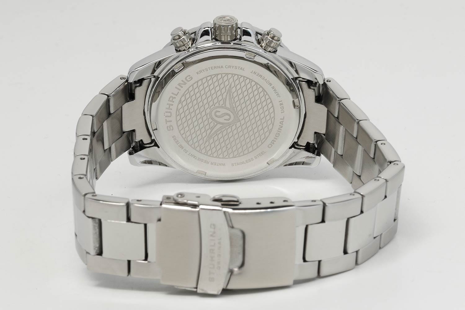 Stuhrling 3957.1 — мощные мужские часы с выразительным спортивным характером и динамичным дизайном. Корпус из нержавеющей стали гармонично сочетается с циферблатом, оформленным рельефным узором и контрастными счётчиками хронографаХронографФункция позволяет измерять отрезки времени с особой точностью: часы, минуты, секунды. Верным признаком хронографа является наличие на циферблате 3 дополнительных окошек-счётчиков.. Широкий безельБезельВнешний ободок, закрепляющий стекло. В спортивных часах так называется поворотное кольцо с делениями на циферблате, выполняет роль таймера – замеряет отрезки времени на шкале. Неподвижный безель – элемент декора. Однонаправленно вращающийся безель на дайверских часах позволяет фиксировать моменты погружения и выныривания на поверхность. с PVD-покрытиемPVDУльтратонкое покрытие наносится в технике вакуумного напыления, сочетает в себе нитрид титана особой прочности со слоем золота или оксида хрома. Несёт в себе декоративную или защитную функцию. подчёркивает брутальный стиль модели, а стрелки и метки с люминесцентным покрытиемЛюминесцентное покрытиеПозволяет считывать показания времени в темноте. Производители наносят на стрелки, часовые индексы, безель или поверхность циферблата светонакопительный состав, дающий холодное свечение. обеспечивают идеальную читаемость в любых условиях. Прочное стекло KrysternaKrysternaKrysterna — инновационное стекло для наручных часов. Благодаря уникальной структуре, Krysterna объединяет ключевые преимущества двух материалов: твердость сапфира, защищающую от царапин, и гибкость минерального стекла, обеспечивающую устойчивость к деформациям. Такая комбинация делает его идеальным решением для часов, подверженных экстремальным нагрузкам, сохраняя при этом оптическую прозрачность. устойчиво к царапинам, сохраняя прозрачность и блеск. Завершает образ стальной браслет с раскладной застёжкойРаскладная застёжкаТакой тип застёжки используется только на браслетах из металла. Она никогда не раскрывается полностью, происходит разделение на 2 и более частей. Раскладывающая застёжка снизит вероятность потери часов к минимуму., гарантирующий комфорт и надёжную фиксацию. Stuhrling — стильная и функциональная модель для уверенных мужчин, ценящих точность и энергию в каждой детали.
