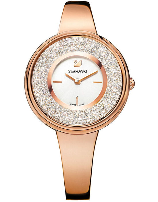 Женские часы Swarovski Crystalline Pure 5269250 – эти оригинальные часы оттенка розового золота, простые и современные, изумительно сверкают 850 кристаллами в фирменной закрепке Swarovski Crystalline. Часы с серебряно-белым циферблатом с рисунком в виде солнечных лучей на браслете из нержавеющей стали с PVDPVDУльтратонкое покрытие наносится в технике вакуумного напыления, сочетает в себе нитрид титана особой прочности со слоем золота или оксида хрома. Несёт в себе декоративную или защитную функцию. покрытием оттенка розового золота придадут любому образу современной женственной элегантности. Надежное минеральное стеклоМинеральное стеклоМинеральное стекло представляет собой искусственно выращенный минерал кварца. Такое стекло отличается особой устойчивостью к повреждениям и царапинам. Уступает по некоторым качествам сапфировому стеклу. защищает часы от царапин и долго сохраняет первоначальный внешний вид. Длина ремешка часов: 19 см.