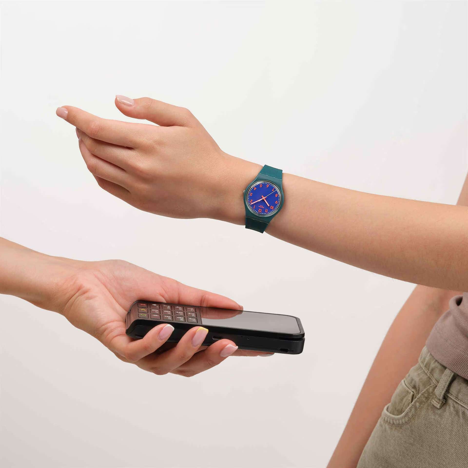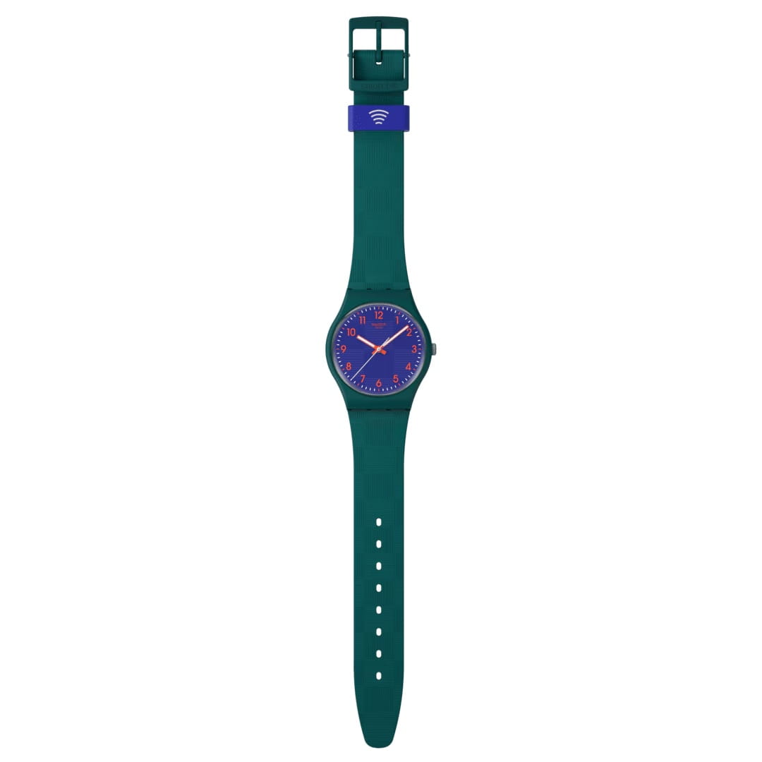 Женские наручные часы Swatch PATTERN FORMATION PAY! SO28N120-5300 — это стильный и современный аксессуар для тех, кто ценит лёгкость и комфорт. Корпус выполнен из пластика, диаметром 34 мм и толщиной 8.75 мм, что обеспечивает долговечность и утончённый внешний вид. Циферблат защищён органическим стеклом, устойчивым к повреждениям. Модель оснащена кварцевым механизмом, обеспечивающим высокую точность хода. Часовая и минутная стрелки с люминесцентным покрытиемЛюминесцентное покрытиеПозволяет считывать показания времени в темноте. Производители наносят на стрелки, часовые индексы, безель или поверхность циферблата светонакопительный состав, дающий холодное свечение.. Силиконовый текстурированный матово-зеленый ремешок на стандартной застёжке гармонично дополняет корпус и обеспечивает комфортное ношение. Водозащита 30 метров позволит защитить корпус от случайных брызг или капель дождя. Эти часы подойдут для повседневного ношения и станут ярким акцентом в вашем наряде. Эти часы оснащены функцией SwatchPAY!.