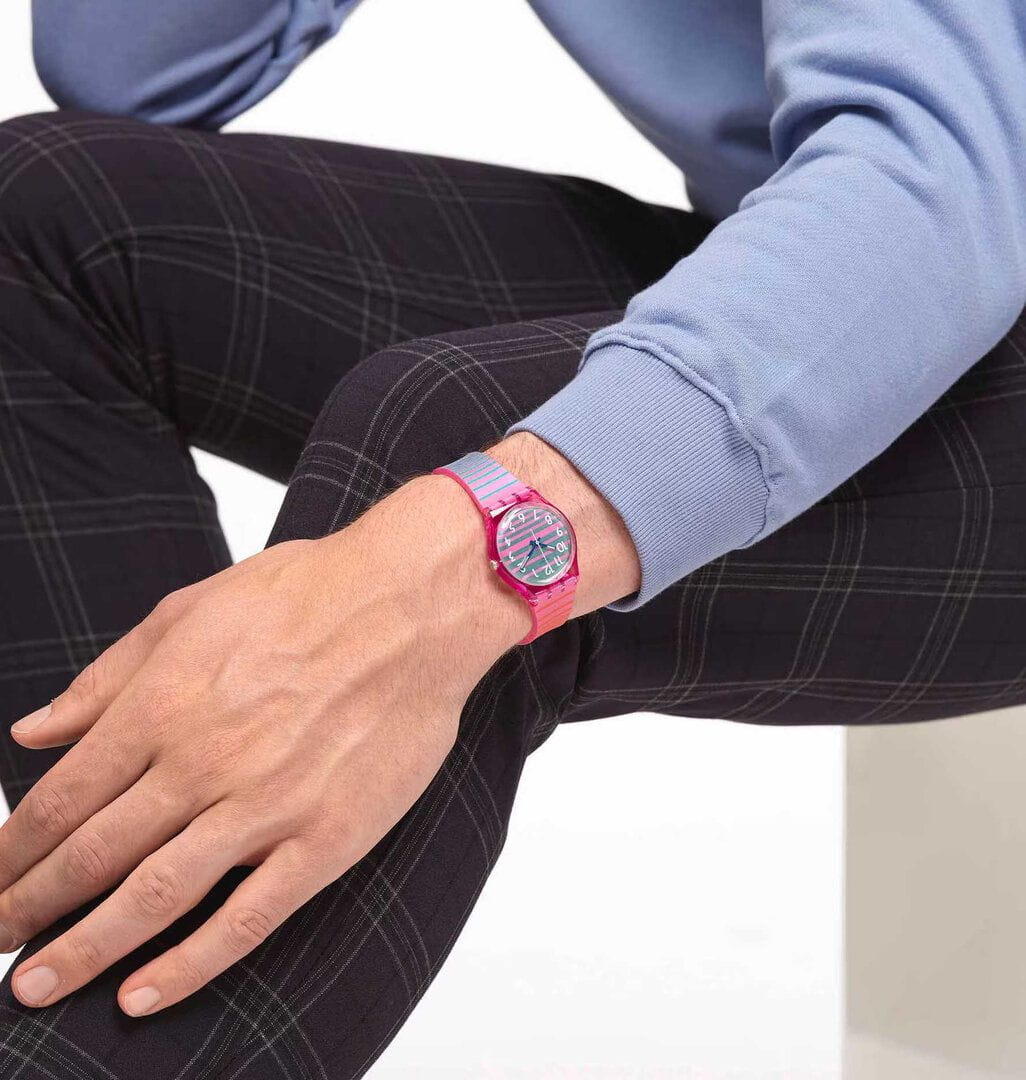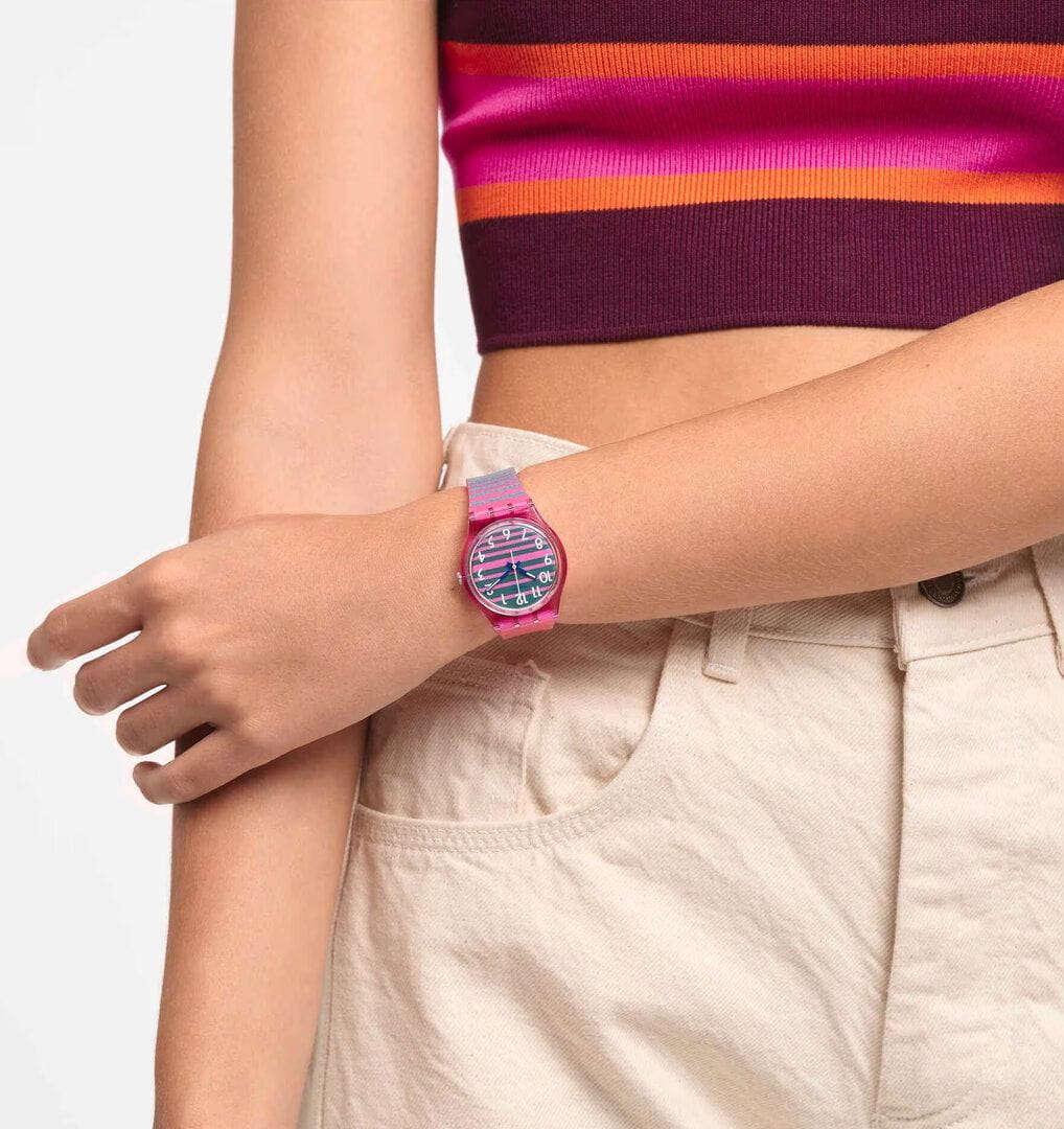 Часы Swatch SO28P105 — это стильный и современный аксессуар, который идеально подходит для повседневного ношения. Полосатый циферблат этих часов с белыми печатными цифрами  - защищен корпусом из биоматериала и покрыт биостеклом. Органическое стеклом устойчиво к царапинам и ударам, что гарантирует долговечность изделия. Внутри часов установлен надежный кварцевый механизм, который обеспечивает точность хода. Эти часы водонепроницаемы до 30 метров, что позволяет не беспокоиться о случайных брызгах или дождевых каплях. Ремешок часов  выполнен из силикона и имеет регулируемую длину, застежка классическая из алюминия. Swatch SO28P105 — это идеальный выбор для тех, кто ценит сочетание стиля, комфорта и функциональности в одном аксессуаре.