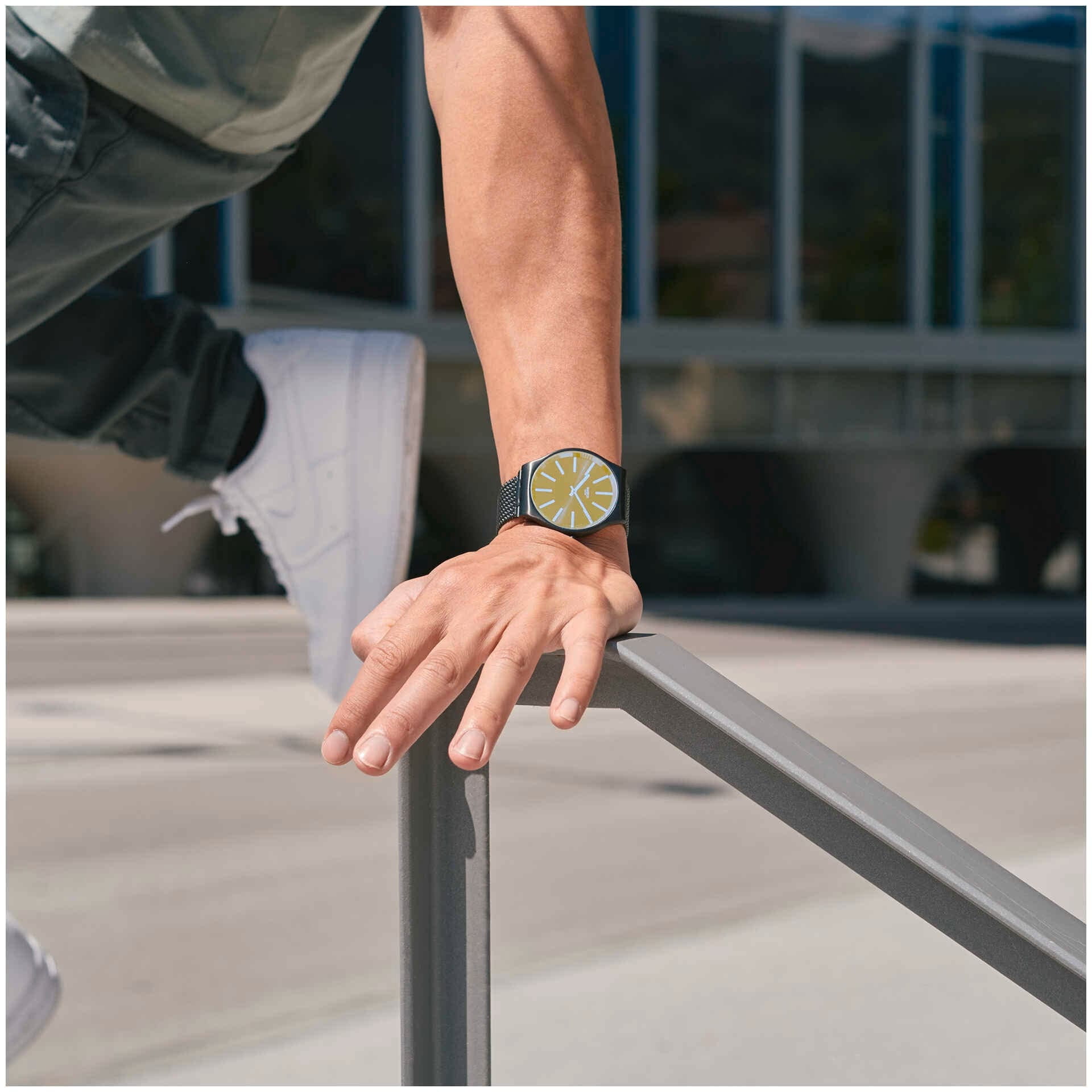 Часы Swatch SS07B104M — это стильный и современный аксессуар для тех, кто ценит лёгкость и комфорт. Часы идеально подойдут как для мужчин, так и для женщин. Диаметр циферблата этих сверхтонких часов составляет 42 мм. Модель обладает матовым корпусом, а также украшена браслетом миланского плетения из нержавеющей стали с PVDPVDУльтратонкое покрытие наносится в технике вакуумного напыления, сочетает в себе нитрид титана особой прочности со слоем золота или оксида хрома. Несёт в себе декоративную или защитную функцию. покрытием и раскладным замкомРаскладной замокДанный вариант застежки используется только на часах с металлическим браслетом. Отличительная особенность такого крепления в том, что длина браслета становится универсальной и вы можете самостоятельно отрегулировать нужный вам размер – застежка просто двигается по браслету часов.. Радиальную полировку циферблата этой изящной модели подчеркивает стекло с эффектом Solar Spectrum, благодаря которому часовые индексы кажутся флуоресцентными. Водозащита 30 метров делает часы практичными для повседневного использования. Эти часы подойдут для повседневного ношения и станут ярким акцентом в вашем наряде.