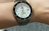 У данной модели диаметр корпуса 37 мм, Стальной браслет - все как я хотела .Страна производитель - Швейцария Есть индикация даты. Стрелки и метки с люминесцентным покрытием. Перламутровый циферблат с часовыми индексами в виде штрихов и точек. Корпус выполнен из нержавеющей стали с частичным PVD покрытием