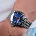 Кварцевый механизм с высокой точностью. Минеральное стеклоМинеральное стеклоМинеральное стекло представляет собой искусственно выращенный минерал кварца. Такое стекло отличается особой устойчивостью к повреждениям и царапинам. Уступает по некоторым качествам сапфировому стеклу. устойчивое к появлению царапин, обладающее высокой прозрачностью. Стрелки и метки с люминесцентным покрытиемЛюминесцентное покрытиеПозволяет считывать показания времени в темноте. Производители наносят на стрелки, часовые индексы, безель или поверхность циферблата светонакопительный состав, дающий холодное свечение.. Класс водозащиты: 50 метров, позволит защитить корпус от случайных брызг или капель дождя. Корпус часов изготовлен из нержавеющей стали. Браслет с раскладной застёжкойРаскладная застёжкаТакой тип застёжки используется только на браслетах из металла. Она никогда не раскрывается полностью, происходит разделение на 2 и более частей. Раскладывающая застёжка снизит вероятность потери часов к минимуму..