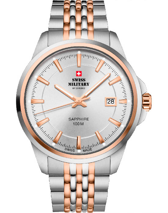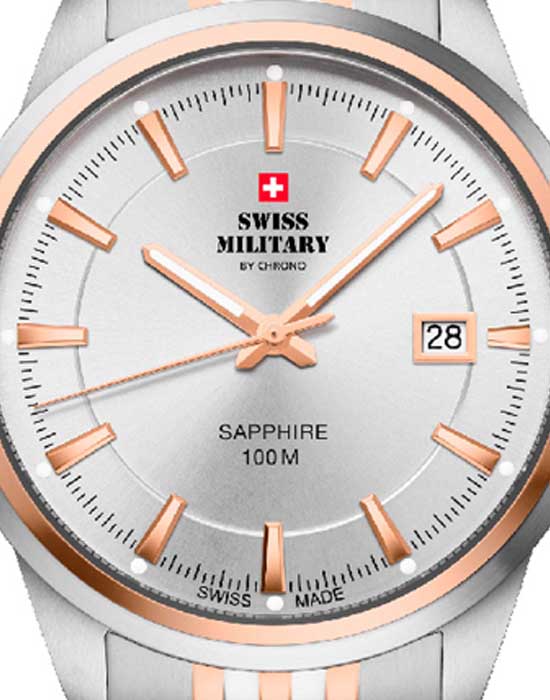 Модель SM34104.07 от Swiss Military by Chrono — это надёжные швейцарские часы в классическом стиле, сочетающие функциональность и сдержанный дизайн. Корпус и браслет выполнены из нержавеющей стали, подчёркивая прочность и элегантность конструкции. Строгий циферблат обеспечивает отличную читаемость, а функция отображения даты добавляет практичности. БезельБезельВнешний ободок, закрепляющий стекло. В спортивных часах так называется поворотное кольцо с делениями на циферблате, выполняет роль таймера – замеряет отрезки времени на шкале. Неподвижный безель – элемент декора. Однонаправленно вращающийся безель на дайверских часах позволяет фиксировать моменты погружения и выныривания на поверхность. с PVD-покрытиемPVDУльтратонкое покрытие наносится в технике вакуумного напыления, сочетает в себе нитрид титана особой прочности со слоем золота или оксида хрома. Несёт в себе декоративную или защитную функцию.. Часы оснащены кварцевым механизмом, обеспечивающим точный ход. Циферблат защищён сапфировым стекломСапфировое стеклоПрочный и надёжный материал из кристалла сапфира синтетического происхождения, характеризующийся особой твёрдостью и устойчивостью к царапинам и повреждениям., устойчивым к царапинам. Установлена раскладная застёжкаРаскладная застёжкаТакой тип застёжки используется только на браслетах из металла. Она никогда не раскрывается полностью, происходит разделение на 2 и более частей. Раскладывающая застёжка снизит вероятность потери часов к минимуму. для надёжной фиксации на запястье и частичное PVD-покрытиеPVDУльтратонкое покрытие наносится в технике вакуумного напыления, сочетает в себе нитрид титана особой прочности со слоем золота или оксида хрома. Несёт в себе декоративную или защитную функцию. браслета. Модель обладает водонепроницаемостью до 100 метров, что делает её подходящей для плавания и сноркелинга.