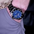 Мужские швейцарские механические часы с автоподзаводом Swiss Military by Chrono Diver SMA34075.09, механический механизм (автоматический калибр) с высокой точностью. Сапфировое стеклоСапфировое стеклоПрочный и надёжный материал из кристалла сапфира синтетического происхождения, характеризующийся особой твёрдостью и устойчивостью к царапинам и повреждениям. устойчивое к появлению царапин, обладающее высокой прозрачностью. Корпус часов изготовлен из стали с PVD-покрытиемPVDУльтратонкое покрытие наносится в технике вакуумного напыления, сочетает в себе нитрид титана особой прочности со слоем золота или оксида хрома. Несёт в себе декоративную или защитную функцию. матового черного цвета, который обрамляет керамический безельБезельВнешний ободок, закрепляющий стекло. В спортивных часах так называется поворотное кольцо с делениями на циферблате, выполняет роль таймера – замеряет отрезки времени на шкале. Неподвижный безель – элемент декора. Однонаправленно вращающийся безель на дайверских часах позволяет фиксировать моменты погружения и выныривания на поверхность.. На синем циферблате центральные часовая, минутная и секундная стрелки и апертура даты в позиции 3 часов. Стальной браслет с PVD-покрытиемPVDУльтратонкое покрытие наносится в технике вакуумного напыления, сочетает в себе нитрид титана особой прочности со слоем золота или оксида хрома. Несёт в себе декоративную или защитную функцию. матового черного цвета, раскладывающаяся застёжкаРаскладная застёжкаТакой тип застёжки используется только на браслетах из металла. Она никогда не раскрывается полностью, происходит разделение на 2 и более частей. Раскладывающая застёжка снизит вероятность потери часов к минимуму..