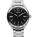 Мужские швейцарские часы от популярного бренда Swiss Military Hanowa представляют собой спортивные аксессуары, измеряющие время с абсолютной «армейской» точностью. Циферблат с люминесцентным покрытиемЛюминесцентное покрытиеПозволяет считывать показания времени в темноте. Производители наносят на стрелки, часовые индексы, безель или поверхность циферблата светонакопительный состав, дающий холодное свечение. стрелок, защищен сапфировым стекломСапфировое стеклоПрочный и надёжный материал из кристалла сапфира синтетического происхождения, характеризующийся особой твёрдостью и устойчивостью к царапинам и повреждениям., устойчивым к появлению царапин и обладающее высокой прозрачностью. Украшен швейцарским крестом, что является отражением высоких стандартов качества. Перед сборкой специалисты тщательно проверяют каждую деталь, для обнаружения мелких дефектов применяется электронное оборудование. Наручные часы станут превосходным дополнением как к деловому костюму, так и к повседневной водолазке благодаря сдержанной классической расцветке и отсутствию лишних деталей. Браслет с раскладной застёжкойРаскладная застёжкаТакой тип застёжки используется только на браслетах из металла. Она никогда не раскрывается полностью, происходит разделение на 2 и более частей. Раскладывающая застёжка снизит вероятность потери часов к минимуму.