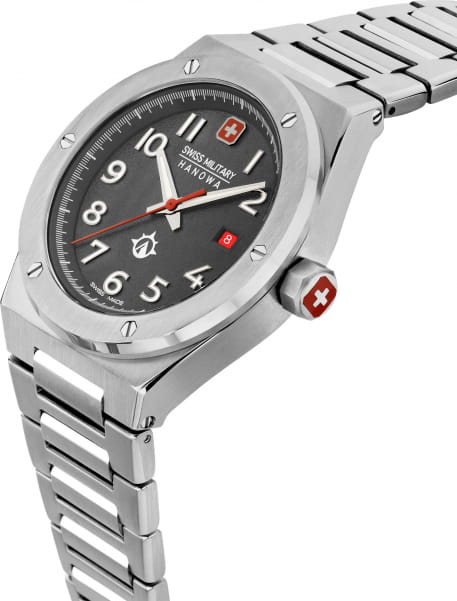 Мужские швейцарские часы с сапфировым стекломСапфировое стеклоПрочный и надёжный материал из кристалла сапфира синтетического происхождения, характеризующийся особой твёрдостью и устойчивостью к царапинам и повреждениям. Swiss Military Hanowa Sonoran SMWGH2101902, кварцевый механизм с высокой точностью. Сапфировое стеклоСапфировое стеклоПрочный и надёжный материал из кристалла сапфира синтетического происхождения, характеризующийся особой твёрдостью и устойчивостью к царапинам и повреждениям. устойчивое к появлению царапин, обладающее высокой прозрачностью. Класс водозащиты: 100 метров, позволит плавать, нырять и заниматься другими водными видами спорта. Корпус часов изготовлен из стали. Стальной браслет на раскладной застёжкеРаскладная застёжкаТакой тип застёжки используется только на браслетах из металла. Она никогда не раскрывается полностью, происходит разделение на 2 и более частей. Раскладывающая застёжка снизит вероятность потери часов к минимуму..