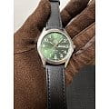 Браслет из телячьей кожи чёрного цвета с классической застёжкой обеспечивает комфортное ношение и надёжную фиксацию. Водозащита до 5 ATM делает часы подходящими для повседневного использования, включая дождь и мытьё рук, но не для плавания.