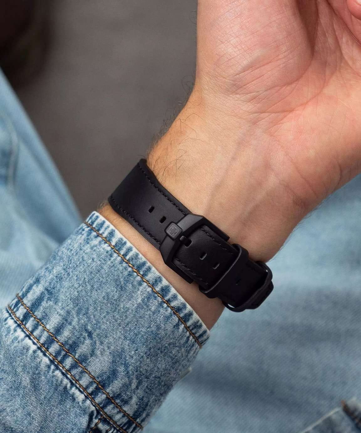 Мужские кварцевые часы Swiss Military Hanowa — это прочный и стильный аксессуар, вдохновлённый классическими полевыми моделями. Корпус диаметром 42 мм выполнен из нержавеющей стали с PVD-покрытиемPVDУльтратонкое покрытие наносится в технике вакуумного напыления, сочетает в себе нитрид титана особой прочности со слоем золота или оксида хрома. Несёт в себе декоративную или защитную функцию.. Циферблат чёрного цвета оформлен индексами и стрелками. Циферблат защищён сапфировым стекломСапфировое стеклоПрочный и надёжный материал из кристалла сапфира синтетического происхождения, характеризующийся особой твёрдостью и устойчивостью к царапинам и повреждениям.. Механизм — швейцарское кварцевое движение Ronda 515 (Swiss Made). Часы оснащены чёрным кожаным ремешком с матовой текстурой на классической пряжке. Водонепроницаемость 100 м позволяет использовать часы для плавания и повседневного ношения. Идеальный выбор для тех, кто ценит швейцарское качество и надёжность.