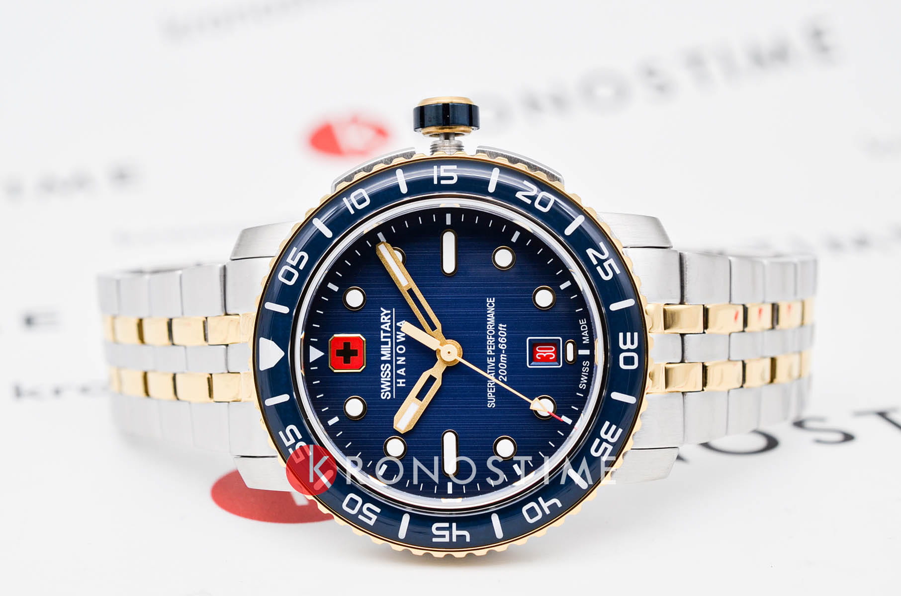 Мужские швейцарские часы с сапфировым стекломСапфировое стеклоПрочный и надёжный материал из кристалла сапфира синтетического происхождения, характеризующийся особой твёрдостью и устойчивостью к царапинам и повреждениям. Swiss Military Hanowa Black Marlin SMWGH0001760, кварцевый механизм с высокой точностью. Сапфировое стеклоСапфировое стеклоПрочный и надёжный материал из кристалла сапфира синтетического происхождения, характеризующийся особой твёрдостью и устойчивостью к царапинам и повреждениям. устойчивое к появлению царапин, обладающее высокой прозрачностью. Корпус часов изготовлен из стали. Вращающийся безельБезельВнешний ободок, закрепляющий стекло. В спортивных часах так называется поворотное кольцо с делениями на циферблате, выполняет роль таймера – замеряет отрезки времени на шкале. Неподвижный безель – элемент декора. Однонаправленно вращающийся безель на дайверских часах позволяет фиксировать моменты погружения и выныривания на поверхность. из стали PVD-покрытиемPVDУльтратонкое покрытие наносится в технике вакуумного напыления, сочетает в себе нитрид титана особой прочности со слоем золота или оксида хрома. Несёт в себе декоративную или защитную функцию. и керамики. Центральные часовая и минутная стрелки, секундная стрелка вынесена на малый циферблат. Окошко даты находится в положении 6 часов. Стрелки и метки с люминесцентным покрытиемЛюминесцентное покрытиеПозволяет считывать показания времени в темноте. Производители наносят на стрелки, часовые индексы, безель или поверхность циферблата светонакопительный состав, дающий холодное свечение.. Класс водозащиты: 200 метров, позволит плавать, нырять и заниматься другими водными видами спорта. Стальной браслет с частичным PVD-покрытиемPVDУльтратонкое покрытие наносится в технике вакуумного напыления, сочетает в себе нитрид титана особой прочности со слоем золота или оксида хрома. Несёт в себе декоративную или защитную функцию.на раскладной застёжкеРаскладная застёжкаТакой тип застёжки используется только на браслетах из металла. Она никогда не раскрывается полностью, происходит разделение на 2 и более частей. Раскладывающая застёжка снизит вероятность потери часов к минимуму..