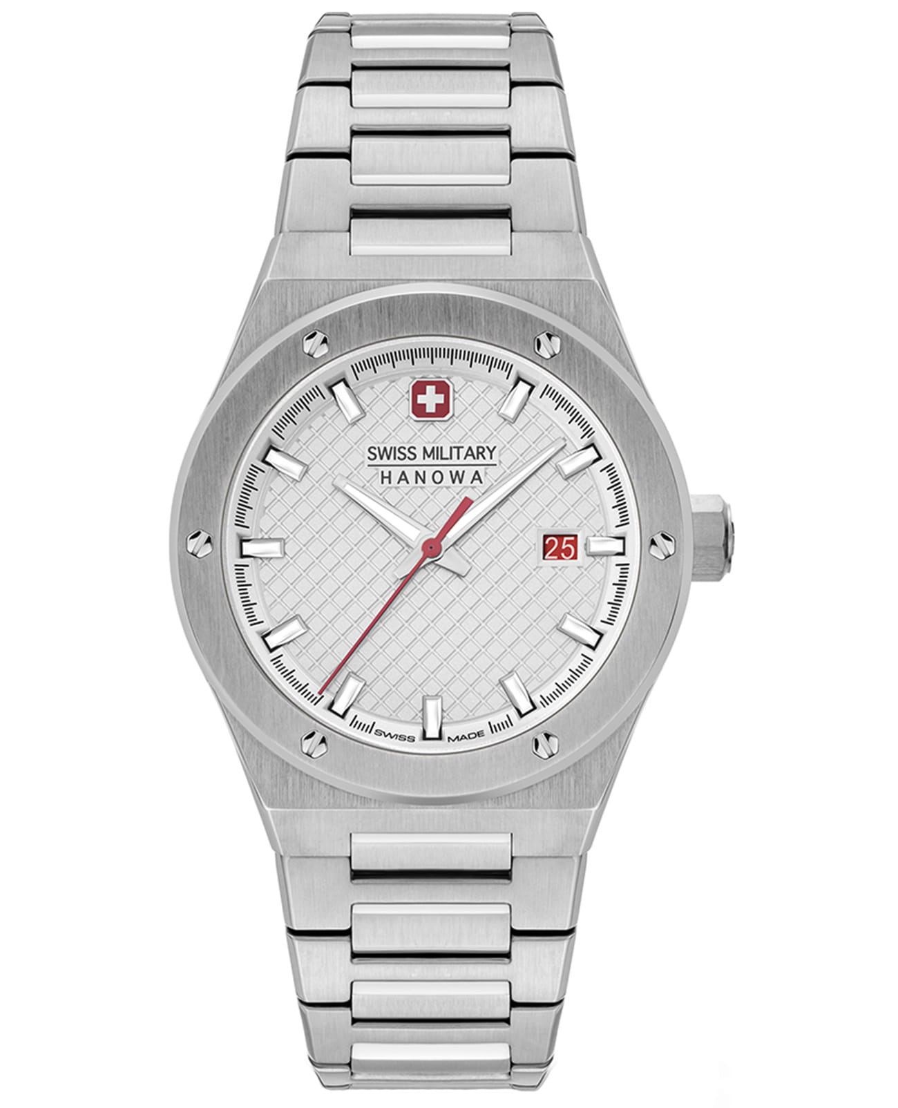 Мужские швейцарские часы с сапфировым стеклом Swiss Military Hanowa Sidewinder SMWGH2101603, кварцевый механизм с высокой точностью. Сапфировое стекло устойчивое к появлению царапин, обладающее высокой прозрачностью. Класс водозащиты: 100 метров, позволит плавать, нырять и заниматься другими водными видами спорта. Корпус часов изготовлен из стали, серебристого цвета.
