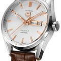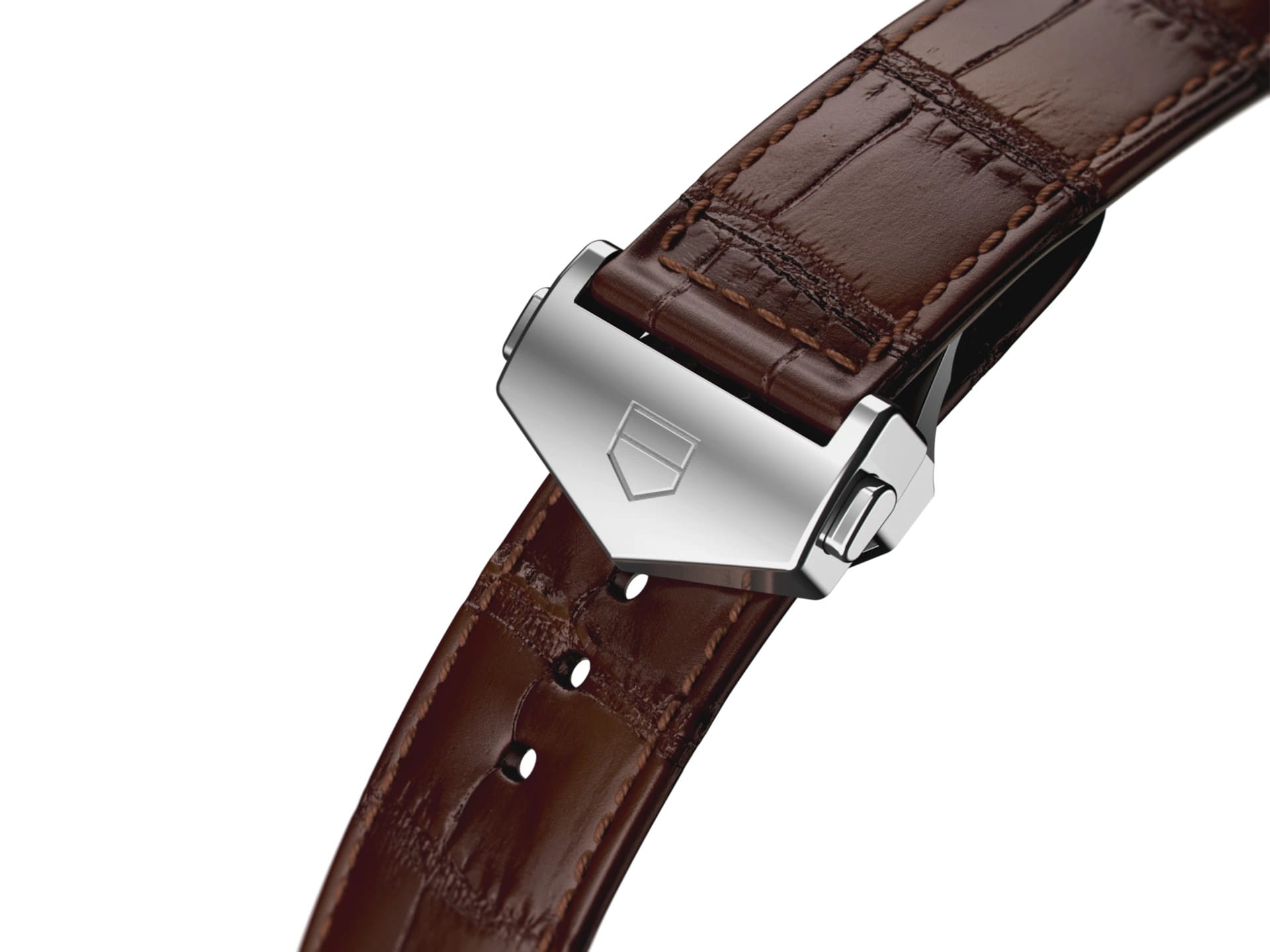 Белый циферблат и ремешок из коричневой кожи аллигатора придают этим автоматическим часам с циферблатом, оснащенным окошком даты и дня недели, по-настоящему классический вид. Стрелки и часовые метки с покрытием из розового золота наделяют изделие роскошным блеском. TAG Heuer Carrera WAR201D.FC6291, механический механизм (автоматический калибр) с высокой точностью. Сапфировое стекло устойчивое к появлению царапин, обладающее высокой прозрачностью. Класс водозащиты: 100 метров, позволит плавать, нырять и заниматься другими водными видами спорта. Корпус часов изготовлен из стали, цвета.
