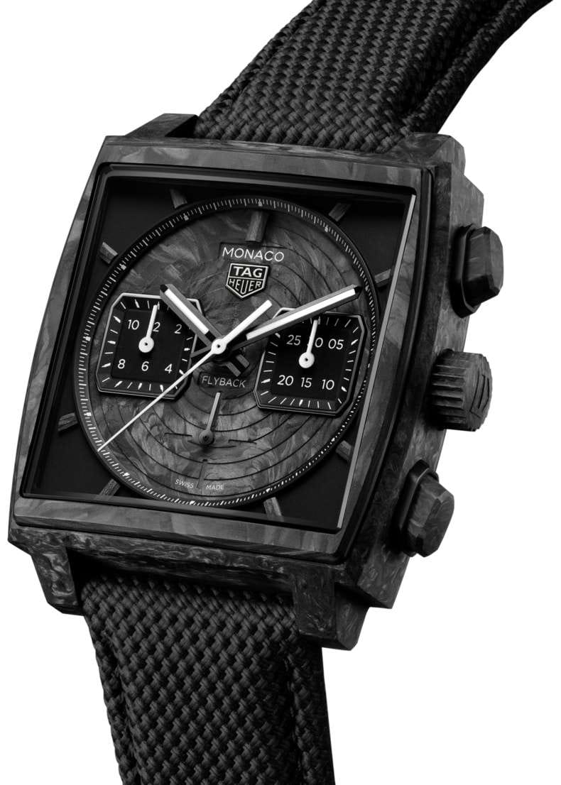 Часы TAG Heuer Monaco Flyback Chronograph TH-Carbonspring CBL5190.FT6313 — это стильное сочетание современного дизайна и часового мастерства. Корпус из карбона диаметром 39 мм защищён сапфировым стекломСапфировое стеклоПрочный и надёжный материал из кристалла сапфира синтетического происхождения, характеризующийся особой твёрдостью и устойчивостью к царапинам и повреждениям., что обеспечивает отличную видимость и защиту от царапин. Черный циферблат с хронографомХронографФункция позволяет измерять отрезки времени с особой точностью: часы, минуты, секунды. Верным признаком хронографа является наличие на циферблате 3 дополнительных окошек-счётчиков.. Стрелки с люминесцентным покрытиемЛюминесцентное покрытиеПозволяет считывать показания времени в темноте. Производители наносят на стрелки, часовые индексы, безель или поверхность циферблата светонакопительный состав, дающий холодное свечение. SuperLumiNova® обеспечивают превосходную читаемость даже в условиях низкой освещённости. Эти элегантные часы с механический механизмом (автоматический калибр) с высокой точностью. Браслет из каучука оснащён раскладной застёжкойРаскладная застёжкаТакой тип застёжки используется только на браслетах из металла. Она никогда не раскрывается полностью, происходит разделение на 2 и более частей. Раскладывающая застёжка снизит вероятность потери часов к минимуму., что обеспечивает удобство и надёжность. Водонепроницаемость до 100 метров делает часы подходящими для плавания и активного использования. Данная модель выпущена ограниченной серией 50 экземпляров. TAG Heuer Monaco — это выбор для тех, кто ценит утончённость, стиль и высочайшее качество.