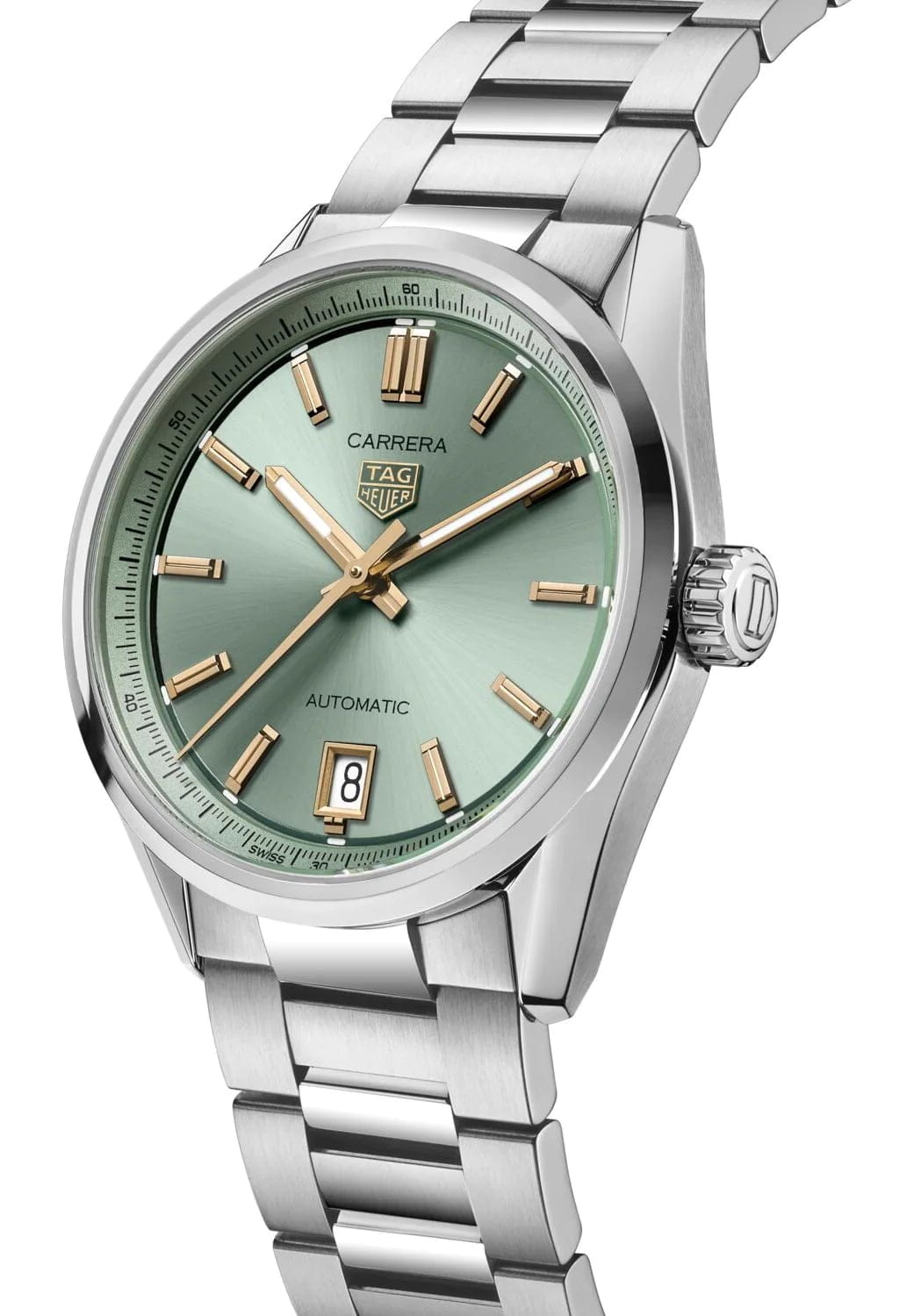 Утончённые часы TAG Heuer WBN2312.BA0001 созданы для стильных и смелых женщин. Механический механизм (автоматический калибр) с высокой точностью производится целиком в стенах компании. Стальной корпус с диаметром 32 мм. Сапфировое стеклоСапфировое стеклоПрочный и надёжный материал из кристалла сапфира синтетического происхождения, характеризующийся особой твёрдостью и устойчивостью к царапинам и повреждениям. устойчивое к появлению царапин, обладающее высокой прозрачностью. На стрелки и метки нанесено люминесцентное покрытиеЛюминесцентное покрытиеПозволяет считывать показания времени в темноте. Производители наносят на стрелки, часовые индексы, безель или поверхность циферблата светонакопительный состав, дающий холодное свечение.. Класс водозащиты: 50 метров, позволит защитить корпус от случайных брызг или капель дождя. Браслет с раскладной застёжкойРаскладная застёжкаТакой тип застёжки используется только на браслетах из металла. Она никогда не раскрывается полностью, происходит разделение на 2 и более частей. Раскладывающая застёжка снизит вероятность потери часов к минимуму.. Апертура даты находится на отметке 6 часов.