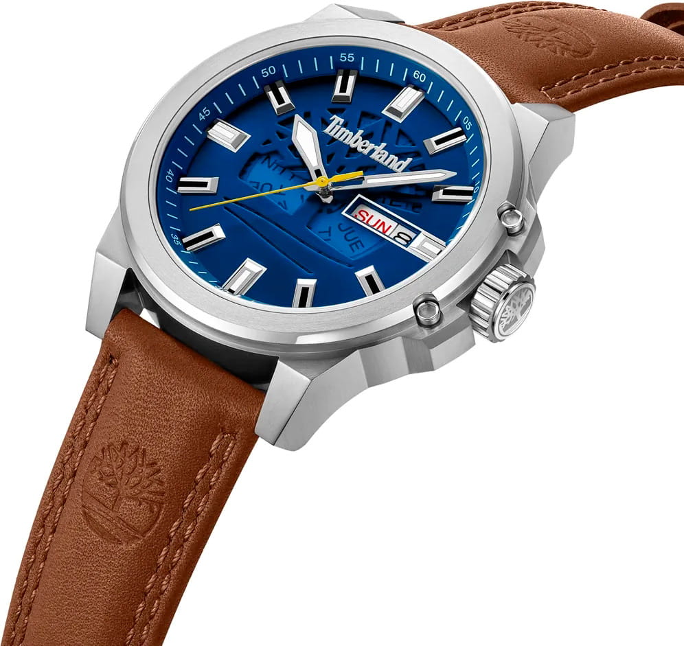 Мужские часы Timberland Canfield TDWGB0040801, кварцевый механизм с высокой точностью. Минеральное стеклоМинеральное стеклоМинеральное стекло представляет собой искусственно выращенный минерал кварца. Такое стекло отличается особой устойчивостью к повреждениям и царапинам. Уступает по некоторым качествам сапфировому стеклу.. Класс водозащиты: 50 метров, позволит защитить корпус от случайных брызг или капель дождя. Люминесцентная подсветкаЛюминесцентное покрытиеПозволяет считывать показания времени в темноте. Производители наносят на стрелки, часовые индексы, безель или поверхность циферблата светонакопительный состав, дающий холодное свечение. стрелок и меток на циферблате. Корпус часов изготовлен из нержавеющей стали. Кожаный ремешок на стандартной застёжке. Окошко даты находится в положении 3 часа.