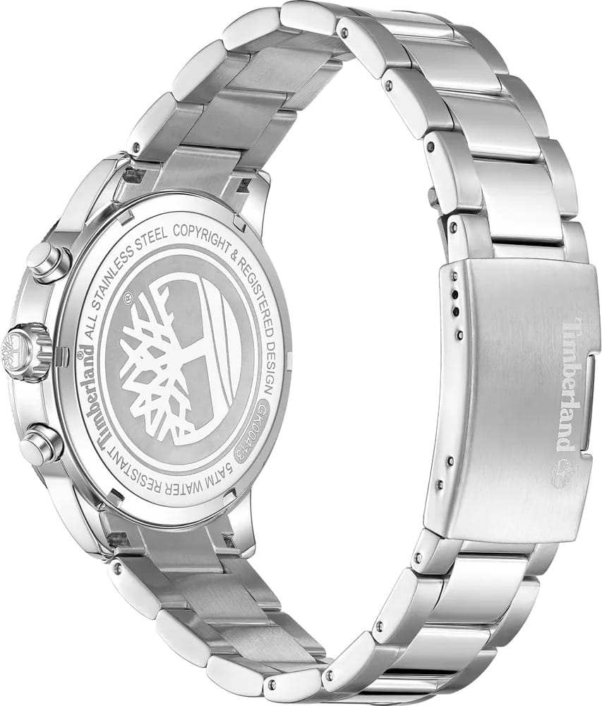 Американские мужские часы Timberland Parkman TDWGK0041302 имеют кварцевый механизм с высокой точностью. Класс водозащиты: 50 метров, позволит защитить корпус от случайных брызг или капель дождя. Корпус часов изготовлен из стали. Прочное минеральное стеклоМинеральное стеклоМинеральное стекло представляет собой искусственно выращенный минерал кварца. Такое стекло отличается особой устойчивостью к повреждениям и царапинам. Уступает по некоторым качествам сапфировому стеклу.. Стрелки c люминесцентным покрытиемЛюминесцентное покрытиеПозволяет считывать показания времени в темноте. Производители наносят на стрелки, часовые индексы, безель или поверхность циферблата светонакопительный состав, дающий холодное свечение.. БезельБезельВнешний ободок, закрепляющий стекло. В спортивных часах так называется поворотное кольцо с делениями на циферблате, выполняет роль таймера – замеряет отрезки времени на шкале. Неподвижный безель – элемент декора. Однонаправленно вращающийся безель на дайверских часах позволяет фиксировать моменты погружения и выныривания на поверхность. из алюминия с PVD-покрытиемPVDУльтратонкое покрытие наносится в технике вакуумного напыления, сочетает в себе нитрид титана особой прочности со слоем золота или оксида хрома. Несёт в себе декоративную или защитную функцию.. Стальной браслет на раскладной застёжкеРаскладная застёжкаТакой тип застёжки используется только на браслетах из металла. Она никогда не раскрывается полностью, происходит разделение на 2 и более частей. Раскладывающая застёжка снизит вероятность потери часов к минимуму..